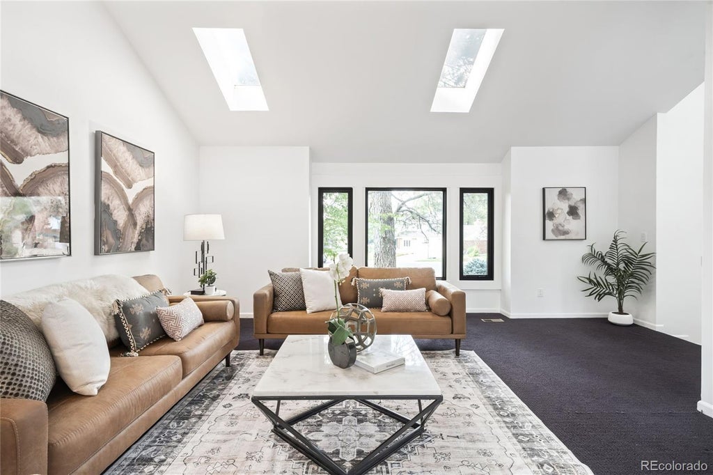 Tucked against open space and trails, this beautifully updated Hilltop at the Highlands residence blends modern upgrades with serene natural surroundings. A vaulted living room with skylights sets a warm tone, flowing into a bright dining area and a remodeled kitchen showcasing sleek cabinetry, stainless steel appliances and a peninsula with seating. A charming breakfast nook connects seamlessly to the private backyard, perfect for outdoor gatherings amid mature landscaping. Enjoy relaxing in a cozy den grounded by a tiled gas fireplace. The spa-like primary suite offers a true retreat with a steam shower, built-in closet system and direct access to a private deck. Three additional bedrooms and updated baths provide comfort and versatility, while the finished basement boasts a spacious rec room and large storage area. With new flooring, refined finishes and thoughtful design throughout, this home combines everyday ease with timeless sophistication in a coveted Centennial neighborhood.