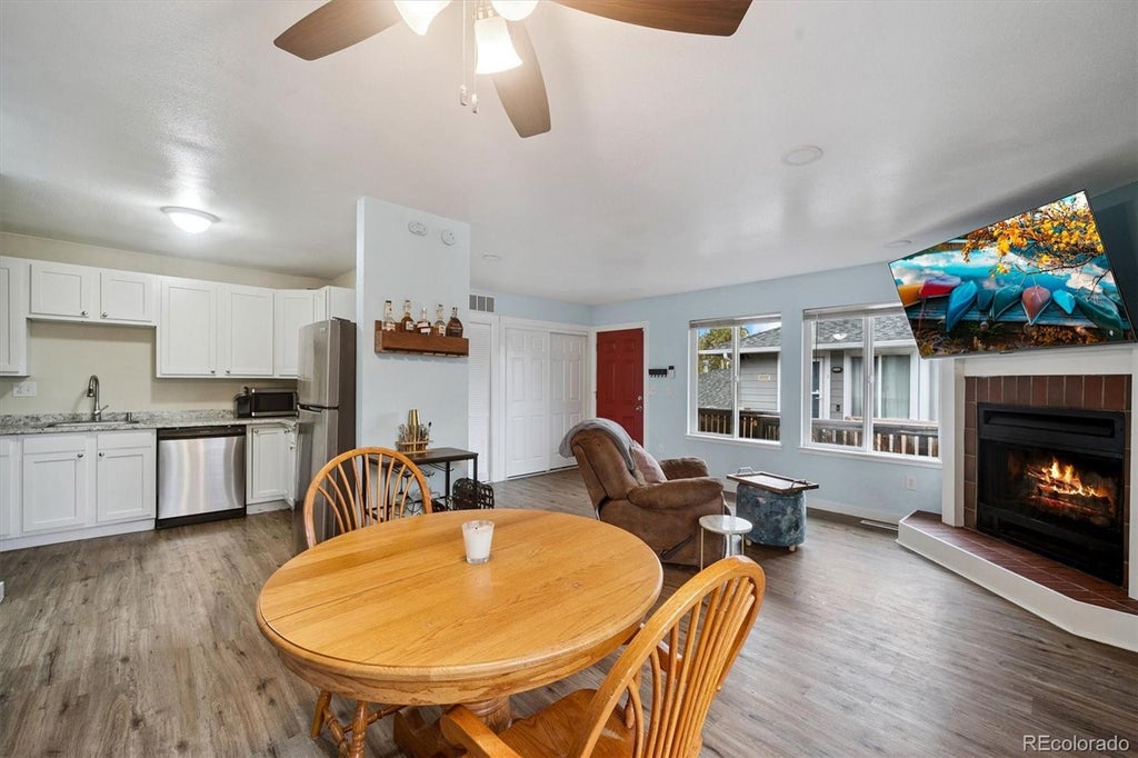 Welcome to your Denver retreat! This charming 3-bedroom, 1-bath townhome offers a bright and welcoming layout, fresh paint, newer vinyl plank flooring, new A/C unit (2022), and an oversized attached shared garage with secure storage. Enjoy the cozy wood-burning fireplace for chilly evenings, a private deck perfect for morning coffee or summer BBQs, and a recently updated kitchen (2022) featuring new cabinets, countertops, sink, faucet, disposal, and newer stainless-steel appliances. The bathroom has also been thoughtfully updated (2022) with a new vanity, tile shower, toilet, and fixtures. Additional updates include: new interior doors, light fixtures, and ceiling fans adding modern style throughout! A private laundry room brings everyday convenience! Community perks include a sparkling pool, ample guest parking, and a new roof (2021) by the HOA. Enjoy being steps away from Rotella Park, a 40-acre park offering 1-mile concrete trail, a fishing-friendly lake, a modern playground, and access to volleyball and basketball courts! Easy access to I-270 and Hwy 76, this move-in ready home combines comfort, updates, and location—don’t miss the chance to make it yours before it’s gone!
