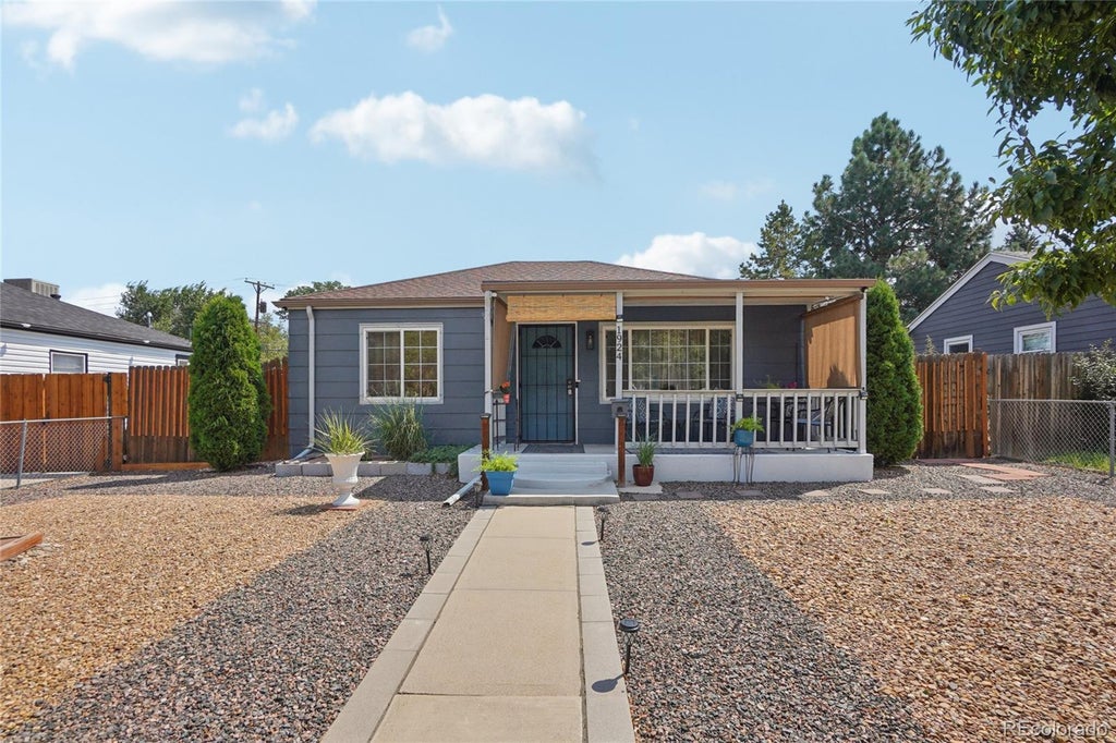 Welcome home to this charming ranch-style retreat in Aurora’s desirable Gateway Park community! Thoughtfully xeriscaped for easy maintenance, the inviting front yard leads to a covered front porch—the perfect spot to enjoy your morning coffee. Step inside to a bright and sunny living room that flows seamlessly into the kitchen and eat-in dining area, complete with stainless steel appliances. Just beyond, the cozy family room offers a warm fireplace and direct access to the spacious backyard deck—ideal for effortless indoor-outdoor living. The home features two sunny bedrooms, a full bathroom, and a convenient laundry room with additional storage. Out back, the fully fenced yard provides a peaceful space to relax or entertain, with a large deck, patio, and lush lawn. Alley access leads to a detached one-car garage and a separate two-space covered carport. Located close to shops, dining, parks, and more, this lovely home offers comfort, convenience, and a low-maintenance lifestyle in a welcoming neighborhood!