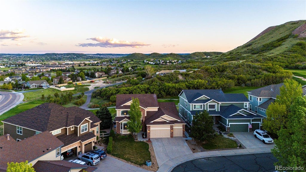 Welcome to your dream home in Red Hawk, Castle Rock! This magnificent two-story residence, with its stunning updates, is perfectly situated on a desirable golf course home site. This isn't just a house; it's a lifestyle, offering six bedrooms and five baths. The grand entry leads into an open-concept main level, ideal for entertaining. Imagine hosting gatherings in the sun-drenched great room, flowing into the gourmet kitchen with gleaming granite countertops, custom cabinetry, and Kitchen island. A formal dining area and a cozy breakfast nook overlook the golf course. The primary master bedroom is conveniently located on the main floor, a private retreat with a spa-like en-suite bathroom featuring a large spa tub, walk-in shower, and dual vanities. A dedicated study is also on the main floor. Upstairs, find three additional secondary bedrooms. One boasts its own private en-suite bathroom and a private balcony "Hawks Nest" with spectacular views of the golf course and the South Castle Rock corridor. The other two bedrooms share a beautifully appointed full bathroom. The finished walk-out basement is an entertainer's dream, with two more bedrooms, a large entertainment/family room, and ample storage and workshop space. Step outside to the meticulously landscaped yard and golf course views. Red Hawk offers exceptional amenities, including a great trail system, and the golf course. Enjoy the abundance of wildlife and low tax rates that make the Red Hawk Community so appealing. This home offers luxurious comfort, breathtaking views, and an unbeatable location. It's where your next chapter begins. Don't miss this exquisite piece of paradise! One of the Lowest tax rates in Castle Rock...This home is one of the lowest price per square foot homes in the area. Ton of house for the price. Take a look you will not be disappointed.