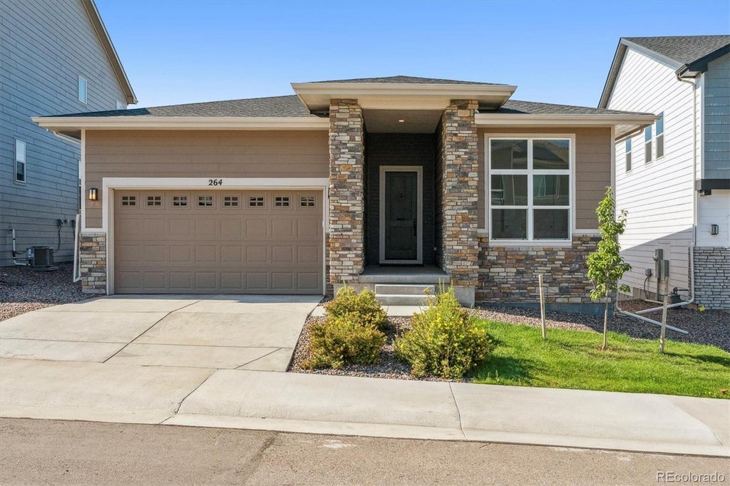 Looking for that perfect blend of style, comfort, and low-maintenance living? Welcome to this gorgeous one-level ranch in Montaine where everything feels fresh, open, and ready for you to move right in. This newer Toll Brothers home is packed with personality and upgrades from the wide-open floorplan and luxury vinyl flooring to the high 10-foot ceilings and dreamy natural light throughout. Love to cook? You’ll be delighted over the gourmet kitchen with its oversized island, granite countertops, crown-topped cabinets, upgraded appliances, and yes a gas cooktop ready for your signature dishes. The great room brings cozy vibes with a stacked stone fireplace and a massive 12-foot sliding door that leads out to your fully landscaped, fenced backyard complete with a covered deck that’s just begging for weekend lounging or sunset dinners. Off the main living space, there's a cozy sitting room for coffee chats or quiet moments. The spacious primary suite is a true escape with dual walk-in closets and a spa-like bath featuring a stand alone soaking tub. Two more bedrooms are tucked away at the front of the house, perfect for guests, a home office, or both. And downstairs? A garden-level basement just waiting for your future plans. You’ll love the designer lighting, custom window coverings, and modern finishes throughout — all the bells and whistles are already here. Plus, Montaine brings resort-style living right to your doorstep with miles of private trails, a brand-new clubhouse, pool, pickleball and tennis courts, fitness center, playgrounds, and gathering spaces. And when you're ready to explore, you're just minutes from I-25 and everything fun in downtown Castle Rock, restaurants, entertainment, festivals and more.