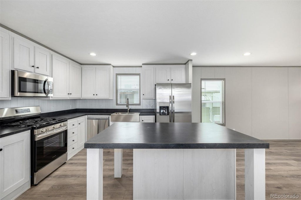 Step into modern comfort with this brand-new 2-bedroom, 2-bathroom home in Apple Ridge! Built by Clayton Homes, this beautifully designed property offers an inviting covered porch, perfect for enjoying Colorado’s fresh air. Inside, an open-concept floor plan boasts a stunning kitchen with sleek countertops, stainless steel appliances, and a spacious island for entertaining. The primary suite features a luxurious en-suite bathroom with double sinks and a soaking tub, while the additional bedroom provides flexibility for guests, an office, or hobbies. With contemporary finishes, energy-efficient design, and a convenient laundry room, this home is move-in ready and waiting for you! Love your outdoor living space your spacious with front and side yard with seasoned tree and grassy area. Enjoy your community amenities including a clubhouse, swimming pool and playground and basketball court. Divinely located near Sunset Vista Natural Area, Longview Trail Bike Racks plus shopping and dining nearby.