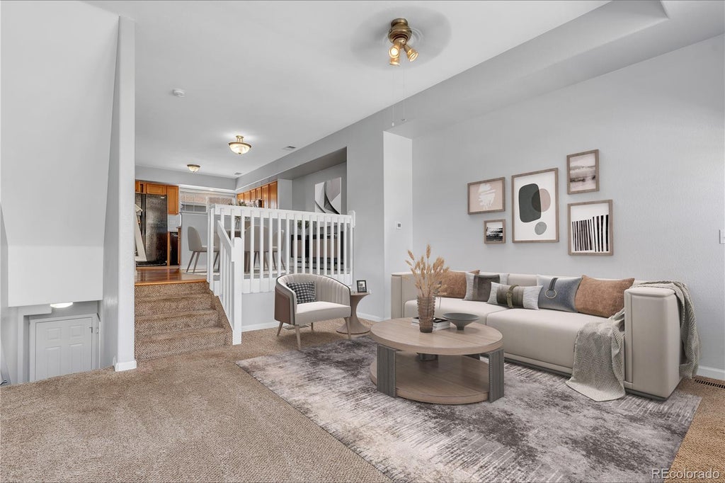 Improved Price! Check it out today! Welcome home! As you step in you will appreciate the large living room with soaring ceilings and an open concept floor plan. The gas powered fireplace adds a beautiful ambiance. The kitchen features lovely quartz countertops, plenty of cabinet storage, and it opens seamlessly to the dining and living areas—perfect for everyday living or hosting friends. You'll also find a convenient powder room for guests and a full-sized washer and dryer included. Upstairs, both bedrooms have their own private en-suite bathrooms, giving you flexibility for a roommate, guests, or a peaceful home office setup. There's also a generous linen closet upstairs and a hidden coat closet on the lower level. One of the standout features is a huge private storage room—use it for holiday decorations, mountain gear, or even a future wine cellar. Plus, there is a brand-new water heater. You will love pulling into your attached garage to avoid scraping snow in the winter. The community features a clubhouse, swimming pool and playground. It would not only be a good home for an owner occupant, but also to rent out. Live a few years in comfort, then rent it out to build future investment. You'll love how close it is to central Denver, major highways and 1.5 miles to Thornton & 88th N Line Light Rail Station to Denver Union Station—making your commute to work or nights out a breeze. Don't miss this opportunity to make this your new home.