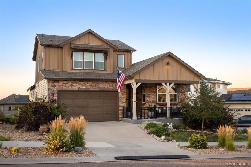 **Price Improvement** Welcome to this stunning residence in the highly sought-after Candelas community, where thoughtful upgrades and custom details make this home truly stand out. The entry hallway is accented with classic wainscoting and leads into a spacious dining room highlighted by a striking custom chandelier that serves as a statement piece and elevates the entire space. The custom chef’s kitchen is designed for both function and style, featuring a gas range with hood, a convenient pot filler, and seamless flow into the living and dining areas. Just beyond, a light-filled sunroom offers its own water access and opens to the extended deck through dramatic garage-style doors, creating the perfect indoor/outdoor living and entertaining experience. The main-level primary suite is a private sanctuary, highlighted by stained-glass accents in both the bedroom and the spa-inspired en-suite, blending artistry with relaxation. Upstairs, generously sized bedrooms share a Jack-and-Jill bathroom, while the finished walk-out basement is an entertainer’s dream with a full custom bar, sink, and lounge area. Completing this level is a rare workshop outfitted with a 220-volt outlet and sub-panel—ideal for hobbies, projects, or serious makers. Car enthusiasts and hobbyists alike will appreciate the oversized garage with epoxy-coated floors, finished walls, and dedicated water access, offering both style and practicality. The professionally landscaped yard is equally impressive, featuring a paver-lined raised garden bed and a private backyard retreat. With 5 spacious bedrooms, 4 full bathrooms, and over 4,200 finished square feet, this home blends elegance, functionality, and craftsmanship in one of Arvada’s premier neighborhoods.