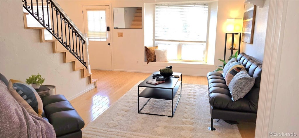 Step inside this open and airy 3-bedroom, 3-bath floor plan featuring bamboo flooring throughout most of the home and fresh paint throughout with a new neutral wall colors. This home features a brand new water heater, new stairs in the garage, and exterior paint completed in August 2025. The spacious main living area is centered around a cozy fireplace and flows seamlessly into the kitchen, while abundant natural light pours in through energy-efficient triple-pane windows. The fully renovated primary suite is a private retreat with a modern en-suite bathroom and generous walk-in closet. Two additional bedrooms and an updated upstairs bathroom provide flexibility for family, guests, or a home office. Craftsman-style touches, including bay windows and built-in shelving, bring character and warmth to the space. Outdoors, enjoy a large private backyard with a full privacy fence, patio, and a newly installed back fence—perfect for entertaining, gardening, or simply relaxing. The front yard has been xeriscaped for easy, low-maintenance beauty. Rooftop solar panels keep utility bills low, while the unfinished basement offers valuable storage and potential for future expansion. Ideally located just minutes from Buckley Space Force Base with easy access to highways, public transit, and DIA, this home combines convenience with comfort. Seller is open to concessions for flooring or carpeting with an acceptable offer.
