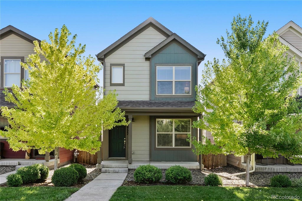 If you are looking for a move-in ready, low-maintenance, minimalistic but stylish home, look no further! This darling Wee-Cottage, built by Boulder Creek Neighborhoods, is able to provide the freedom of a single family, but the perks of a condo (HOA paints every five years and is responsible for exterior maintenance!). A darling, but manageable Astro-turf yard make an on-the-go lifestyle possible, even if you have pets or kids to entertain. The interior is welcoming, with an open concept main level that hosts the spacious and multi-use living room, dining room and upgraded kitchen. The kitchen has 42in espresso cabinets, white counter tops, stainless steel appliances, five burner gas stove and pantry! The fully fenced backyard with patio, connects to the one car, alley-load garage and reserved parking pad. Upstairs, an ample sized primary bedroom with large walk-in closet and 3/4 bath offer the perfect place for you to rest and recharge. Another bedroom, which could be used as an office or guest suite, offers Mountain Views and a full bath, ideal for so many uses! There is extra storage in the crawl space for your holiday decorations or luggage and a radon mitigation system is already in place to ease your mind. This home is located on the park, so you can sit and enjoy a beautiful view while sipping coffee or wine on the front porch or watch the kiddos play at the playground nearby. The HOA is low, considering what is included, amenities that you want and none that you won’t use! A new Walmart & King Soopers shopping center with Starbucks and your other favorite amenities are just blocks away. If you commute, C-470 is about 1.5 miles away, getting you around the Metro area or to the mountains easily and efficiently. Come see this darling home today!