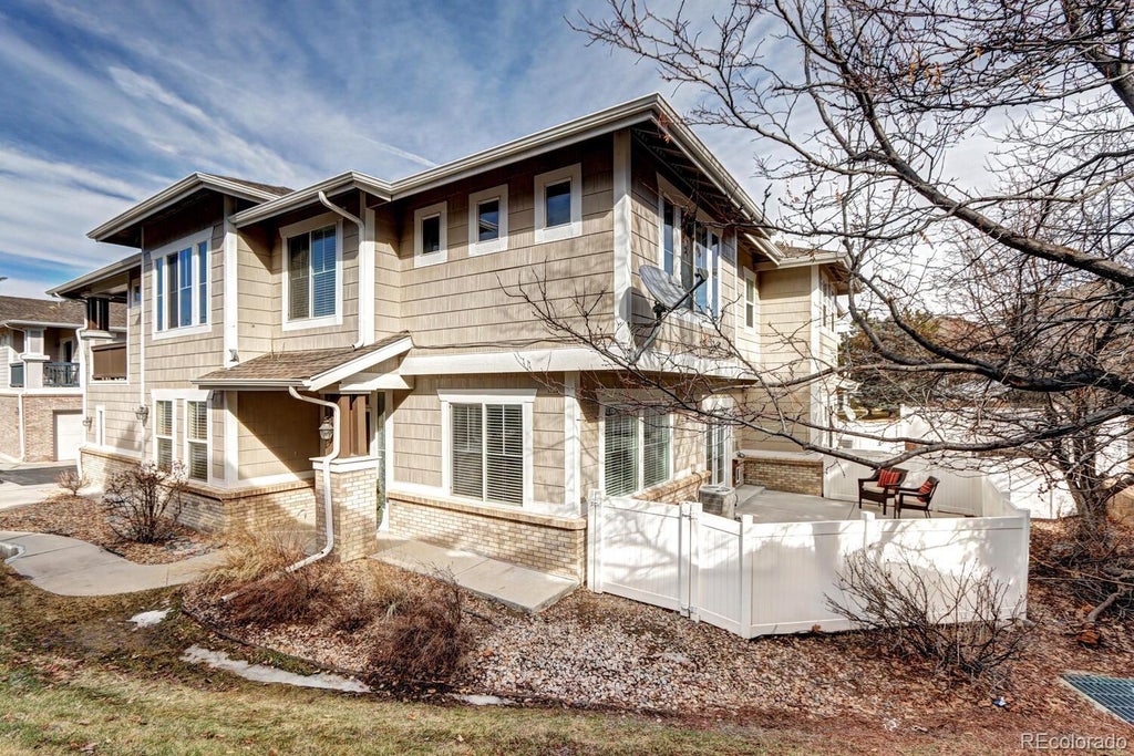 End Unit, Move-In Ready 3 Bedroom, 3 Bathroom Townhouse located within the Sundance at Indigo Hills community of Highlands Ranch! This home boasts a spacious casual open concept floor plan, newly updated with neutral paint palette. Includes 2-car Attached Garage plus a private fenced patio with mature trees providing a tranquil oasis for relaxing or enjoying your morning coffee! Step inside and you will be impressed with this home’s expansive Living area featuring luxury wide plank flooring, cozy fireplace and study/home office workspace. The Kitchen is the heart of the home complete with dining/eating area, breakfast bar, stainless steel appliances and pantry. The upper-level living area showcases a Loft, Laundry with full size washer/dryer for convenient day-to-day living, 3 generously sized Bedrooms including a Primary Retreat outfitted with ceiling fan, walk-in closet and en-suite 5-piece Bathroom featuring tile flooring and soaking tub. Highlands Ranch enjoys exclusive amenities including 4 State of the Art Recreation Centers, pools, tennis, community events, parks and walking trails steps from your front door and more! Location, location, location with quick and easy access to CO470, Santa Fe Drive, minutes to 125, RTD Park and Ride Town Center station taking you anywhere you want to go, including the Mineral Light Rail Station. Easy access to Highlands Ranch Town Center shopping, dining, retail, brewery, Civic Green Park featuring concerts and events, miles of walking/biking trails. New patio completed in November 2024.