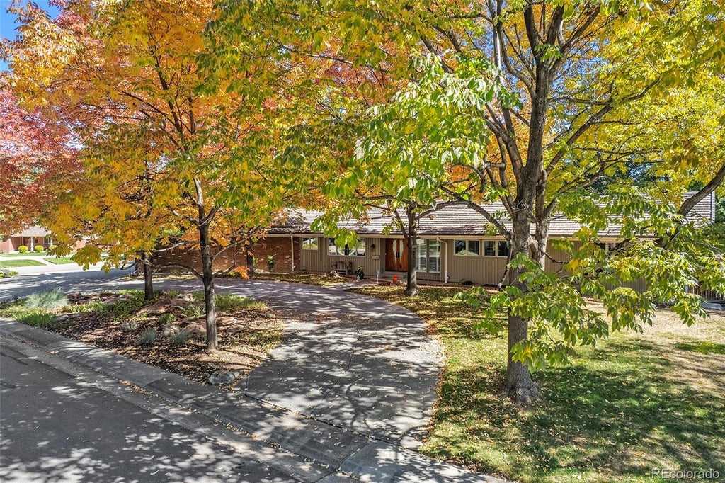 Welcome to one of Cherry Creek Village’s most architecturally significant homes—where modern design meets unmatched privacy and scale. Offered at $100,000 BELOW its appraised value, this stunning, impeccably designed residence is a true original. Built by the neighborhood’s developer as his personal home, it has since been thoughtfully updated throughout. Flooded with natural light and defined by clean lines, natural stone elements, and floor-to-ceiling windows, this one-of-a-kind property offers nearly 5,000 square feet of refined living space on a rare .89-acre lot—a size virtually unheard of in this coveted area. Nestled on a serene corner lot, the grounds are a private oasis with lush, professionally landscaped and managed gardens, towering trees, striking boulders, a large water feature, and a charming raised garden area complete with its own garden shed. The outdoor living experience continues with a spectacular, private pool, a 1300 sq ft sprawling patio featuring a massive stone gas fireplace, and an outdoor grill area perfect for entertaining. The home’s layout offers exceptional flexibility and convenience. The main floor spans over 3,400 sq ft, featuring three spacious bedrooms, expansive open living areas, and seamless integration between indoor and outdoor spaces—ideal for those seeking single-level living. The finished basement provides additional space for relaxing or entertaining guests. Parking is abundant with an attached 2-car garage (which includes TWO EV Chargers), two additional gated spaces, and a large circular driveway—perfect for hosting or accommodating a growing household. Located in the heart of Cherry Creek Village, this home offers quick access to I-25 and 225, Cherry Creek Schools, DTC, shopping, dining, parks, and scenic walking trails.