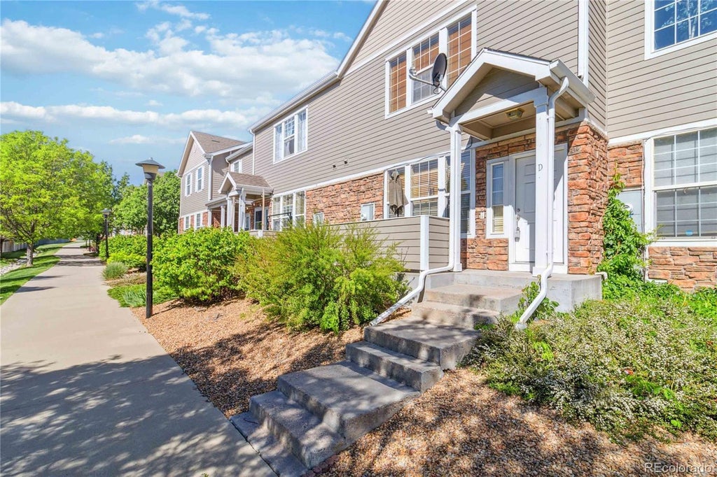 You’ll love this beautifully maintained and thoughtfully designed 2-bedroom, 3-bath townhome with an open floorplan, high ceilings, and an abundance of natural light. With over 1,670 square feet of finished living space, this home offers comfort, flexibility, and an unbeatable location just steps from Sage Creek Park and minutes from shopping and dining. Inside, discover a bright and inviting main level, where a stunning three-sided gas fireplace creates a warm focal point between the living and dining rooms—perfect for cozy winter nights. The open-concept layout continues into the spacious kitchen, which features plenty of cabinets, a pantry, new microwave, and a smart flow for everyday living or entertaining. Upstairs, you’ll find a generous loft —ideal as a home office, media space, or conversion into a third bedroom. The primary suite is a true retreat, with soaring vaulted ceilings, large walk-in closet, and spacious bath with dual sinks and a soaking tub. A second bedroom, full hall bath, and convenient laundry with washer and dryer included round out the upper level. Additional highlights include an attached 2-car garage, ceiling fans and central A/C for year-round comfort and a charming front porch with space for seating. Location is everything, and this home delivers! Just outside your door is Sage Creek Park, complete with a pond, playground, walking and biking paths. You’re also minutes from the Trail Winds Recreation Center, which offers an impressive array of amenities including a pool, lazy river, hot tub, climbing wall, indoor track, and more. With easy access to I-25, E-470, DIA, and Denver, commuting is a breeze—whether you’re headed downtown, to Boulder, or the airport. Shopping, dining, and schools are all conveniently nearby, making this townhome the perfect balance of quiet comfort and urban convenience. Whether you’re looking for your first home, downsizing, or seeking low-maintenance living with space to grow, this home checks all the boxes.