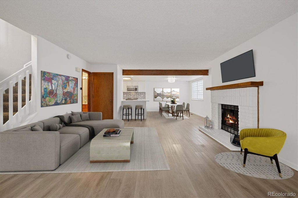 This charming 3-bedroom, 2.5-bathroomtownhome offers 1,537 square feet of comfortable living space, perfect for creating lasting memories. Step inside to find a beautifully renovated kitchen boasting quartz countertops, electric range, and a dishwasher, making meal prep a breeze. The open layout flows seamlessly with hardwood floors and carpeted areas, providing a cozy feel throughout. Relax in the spacious living room with a fireplace, or enjoy the comfort of central AC and heating controlled by a smart thermostat. The primary ensuite is a true retreat, featuring a separate tub and double sinks. Two additional bedrooms offer plenty of space for guests or a home office. Enjoy the convenience of a washer and dryer in the unit, and step outside to the private back yard patio for some fresh air or BBQ. The deeded detached two car garage provides parking and storage. With its modern amenities and inviting atmosphere, this home is ready to welcome you. Make it yours today!