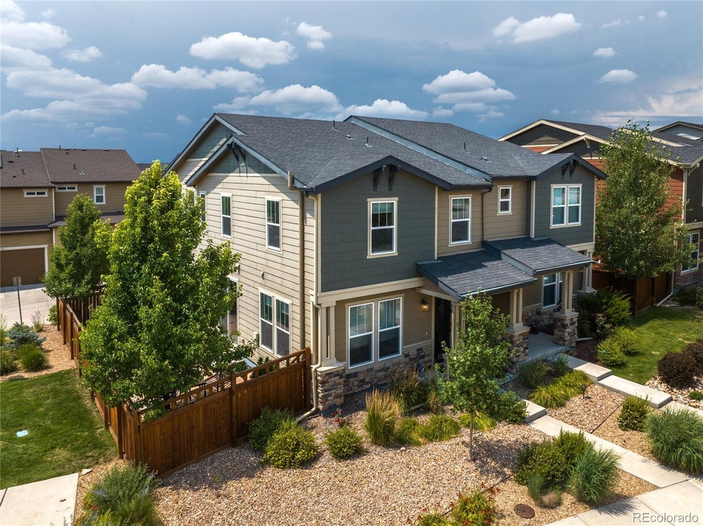 Spacious End-Unit with southern exposure, huge loft and oversized yard! Located at the end of a quiet block in North Park in Baseline, this home features the community’s largest floorplan and one of its biggest yards. The fully fenced outdoor space wraps around the south side, offering great light, privacy, and extra room rarely found at this price point. The main level includes wide-plank wood flooring, a brick-accent fireplace, and an open layout connecting the kitchen, dining, and living areas. The kitchen offers quartz counters, a gas range, stainless appliances, and plenty of storage. Upstairs features a spacious loft, south-facing primary suite, and two additional bedrooms. Throughout the downstairs and loft there is an abundance of natural light. This peaceful location, is minutes from the Paul Derda Rec Center, parks, dog parks, and trails. You’re also close to top-rated schools in a safe, tight-knit community, with quick access to Costco, Home Depot, King Soopers, Top Golf, and just a few miles from tons of shopping and dining at The Orchard Town Center. All of this and 2 minutes from e470, and just 30 minutes from Downtown Denver, Denver International Airport (DIA), and the base of the mountains.