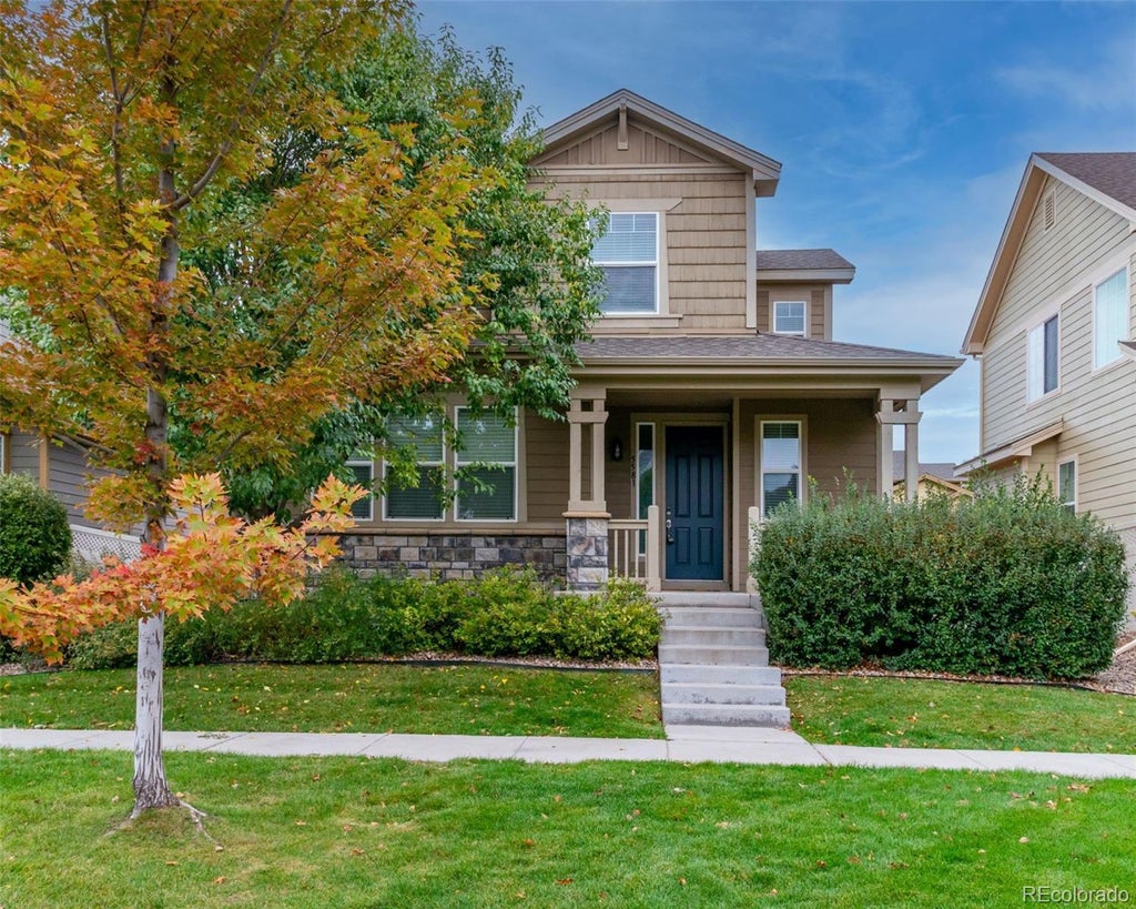 Looking for easy first floor living with room to grow? Plus the added benefit of a great front yard, without the responsibility of mowing or shoveling snow, this is the home! Come visit this unique and quiet neighborhood in north Arvada. This Shoenberg Farms home has a greenbelt outside the front door and the community park is just across the street. The home faces into the greenbelt shared with only 5 other homes. It's a dead end block with no street out the front door front and an alley entrance to the two-car garage. This exceptional two-story home has a lovely open floor plan on the main level. Living room with a fireplace, dedicated dinning space with access to the patio and xeriscaped side yard. Kitchen includes granite counter tops and stainless steal appliance: new refrigerator and microwave, newer stove and dishwasher. There is additional seating at the island, amble cabinets, and built in desk area. Most importantly is the first floor en suite primary bedroom with a professionally designed walk-in closet. For additional convenience the main floor laundry room has built in cabinets and it's own storage closet. Additionally, the second floor has a full bathroom with tub, two bedrooms and a large den/family room. But, if you need even more room to grow the basement is unfinished and waiting for expansion, start planning now! A great bonus is the front yard, tress, bushes and greenbelt are all watered and maintained by the HOA. The possibilities and convenience offered in this home are countless, book your showing today!
