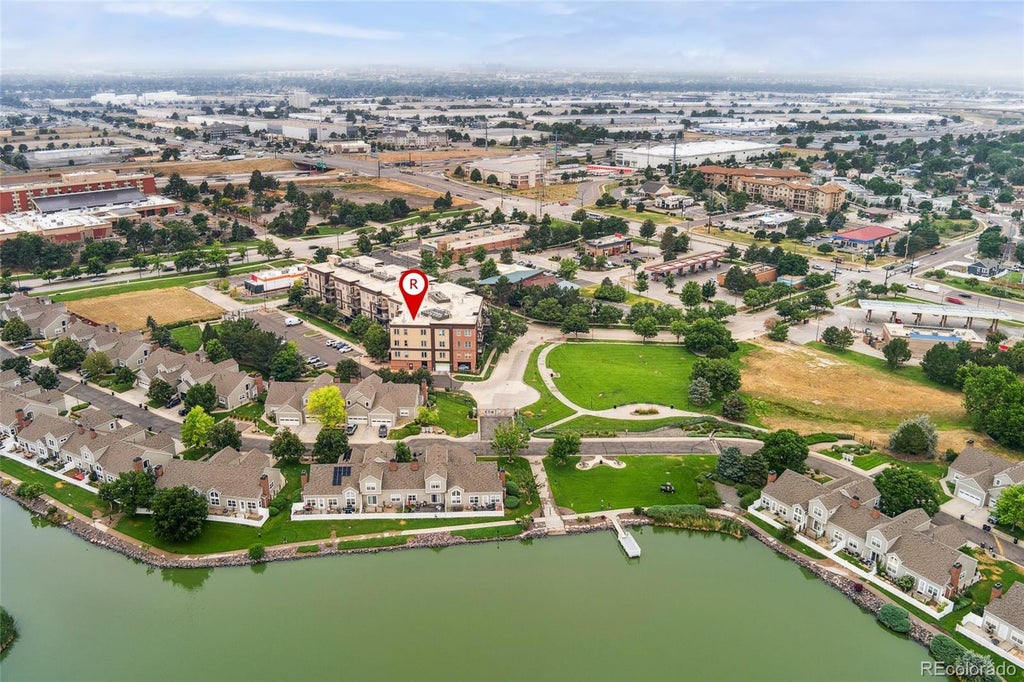 This bright and sunny penthouse condo offers two bedrooms and two bathrooms in a quiet corner of the building in the desirable Gateway Park neighborhood. Steps from the water and paths throughout the community and around the lake to explore! The open floor plan is perfect for comfortable living, with each bedroom featuring an en suite bathroom and ample closet space—ideal for a roommate arrangement if desired. The spacious kitchen boasts warm wood cabinetry and a bar-height center island for extra seating, while the open living and dining areas are filled with natural light from large windows and a glass door leading to a private balcony. A cozy fireplace adds warmth to the living room, and the convenience of in-unit laundry makes daily life even easier. Two assigned parking spaces in covered garage make parking easy, and there is also underground bike storage. This move-in-ready home is in a prime location, offering easy access to DIA, Anschutz Medical Campus, and major highways for seamless travel throughout the Denver metro area. Nearby retail amenities provide convenience while maintaining a peaceful neighborhood setting. Recent updates include a new water heater (2023), balcony door, and primary bedroom sliding glass door. Welcome home!