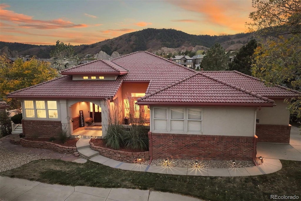 Welcome home to a perfect blend of luxury, comfort, and scenic beauty! Nestled on a cul-de-sac near the entrance of Roxborough Park on a sprawling 20,000+ square-foot lot, the stunning views of the mountains and red rocks are complemented by a thoughtfully designed floor plan that balances cozy, intimate spaces with open, entertaining areas. Every room in this home has incredible views! The 5 deck and patio spaces allow you to fully immerse yourself in the breathtaking surroundings. The main floor’s highlights include cherry oak flooring, a kitchen with granite counters including a center island and stainless-steel appliances, and a great room with expansive windows and french doors that open onto a deck showcasing those amazing views. The dual primary suites, each with walk-in closets and full bathrooms, offer distinct touches—one with a five-piece bath, 2-way bedroom/bath fireplace, and private balcony, the other featuring premium views. The versatility of the office that could be another main floor bedroom is another nice touch. The fully finished walk-out basement adds another floor of living space for comfort and play. Two sets of french-doors take you outside to a patio with more stunning views. This level offers a great room, full wet bar, 2 additional bedrooms with walk-in closets, and a bathroom. It also includes a private flex room and a gym area. The 3-car garage has high ceilings and is complete with craftsman cabinets and workspace. Since owning in 2021, the homeowner has put in $70,000 in upgrades including all new kitchen appliances, new carpeting, upgraded lighting and bathroom fixtures throughout, and luxury vinyl flooring and upgraded vanity and quartz counters on lower level. This home truly embodies the best of inspired Colorado living, where luxury meets nature. Furnishings are negotiable as part of a separate bill of sale.