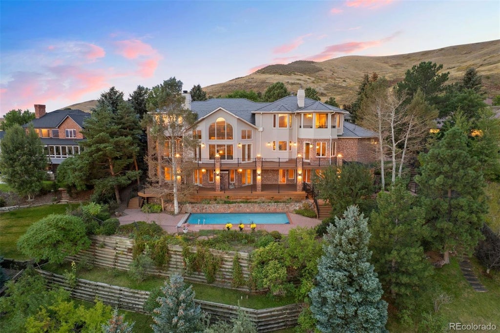 Perched within an exclusive gated community, this 9,300-square-foot custom estate offers a rare combination of privacy, modern design, and uninterrupted views. From sunrise over the city skyline to sunset behind the Rocky Mountain peaks, the panorama is as much a part of the home as its walls of glass and soaring architecture. Every angle was designed to frame the beauty of Colorado while delivering a lifestyle of sophistication, comfort, and ease. The great room showcases vaulted ceilings, expansive windows, and a striking fireplace that anchors the space. The adjoining gourmet kitchen features designer finishes, a large island, and seamless flow into the dining and living areas, creating spaces equally suited for entertaining and everyday living. Upstairs, the primary suite feels like a treehouse in the sky, with floor-to-ceiling windows, a spa-like bath, massive walk-in closet, and private terrace. Each additional bedroom includes an en-suite bath, ensuring comfort and privacy. Thoughtfully curated amenities elevate the home beyond expectation: a theater, fitness studio, sauna and steam shower, wine cellar, and a lower-level lounge with full bar. Outdoor living is equally refined with wrap-around decks, and a sparkling pool, all oriented to capture the sweeping views. A heated four-car garage offers ample storage and convenience, while the location provides seamless access to Golden, Downtown Denver, Cherry Creek, and more than 2,000 acres of Green Mountain trails. This is a rare retreat where luxury, setting, and design converge into one extraordinary home.
