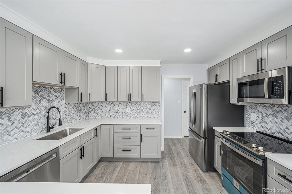 Beautifully Remodeled 2-Bed, 2-Bath Condo with Natural Light & Modern Finishes! This bright, updated condo features an open floor plan with brand new carpet in the bedrooms and sleek laminate flooring in the main living areas. The spacious living/dining area is perfect for entertaining, and the modern kitchen includes stainless steel appliances plus a full laundry room with washer/dryer. Enjoy low-maintenance living with a nearby pool and BBQ space. Includes 2 reserved parking spots (1 garage, 1 surface) and extra secured storage space right across the unit. Prime location—minutes to I-25, Light Rail, shopping, dining, DTC, and Cherry Creek. Don’t miss this move-in-ready gem—schedule your showing today!