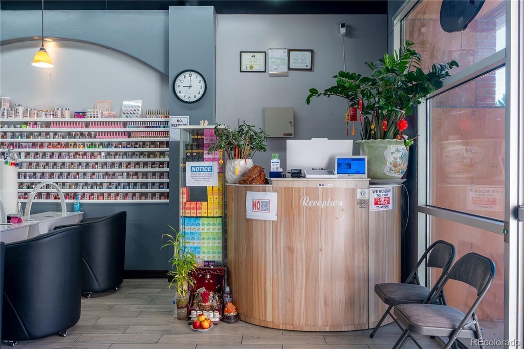 This 1,749 square foot nail salon presents a rare opportunity in a high-visibility, high-traffic corridor. The spacious floor plan is currently outfitted with 9 manicure tables and 7 pedicure chairs, providing an immediate turnkey setup for operations while still offering room to expand services or customize for a new owner’s concept. Recently updated and surrounded by major retailers, shopping centers, and dense residential neighborhoods, the location benefits from strong demographics and steady customer flow. Its proximity to major intersections and established businesses ensures consistent foot traffic and excellent exposure. This is an ideal opportunity for an entrepreneur looking to grow or establish a brand in one of Aurora’s most vibrant and accessible areas.