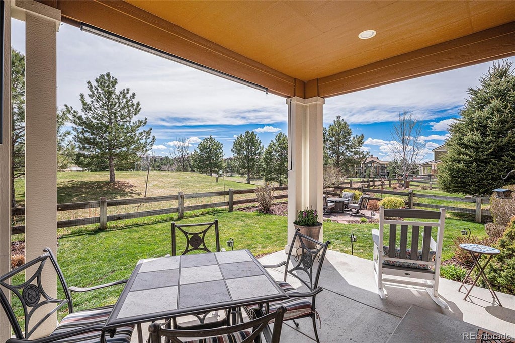 Stunning two story model quality home that is perfectly perched on a meticulously maintained lot, backing to one of several community parks in the highly acclaimed Tallyn's Reach community of Aurora, Colorado. This picturesque, one-of-a-kind master planned community is tucked away amongst towering Pine Trees with miles of walking trails, and anchored by a community clubhouse with resort-style amenities. As you arrive at this remarkable home you will notice the stunning elevation with beautiful stone accents and a perfectly manicured front yard. Upon entry you will be immersed in true elegance and peaceful tranquility with an inviting foyer, open staircase, and an abundance of natural light that floods this home through the large windows. You will be naturally drawn to the spacious family room where you will enjoy the amazing two story overlook, extended wide plank wood floors, stone faced fireplace, and spectacular views of the outdoor living space and community park. The spacious eat-in kitchen is sure to please with an abundance of cabinet and counter space, stainless steel appliances, and easy access to the outdoor covered patio. The living space continues with an elegant dining room, cozy living room, flex room, and full bathroom. The second level of this home is equally impressive with a relaxful primary suite with a fully remodeled spa-like en suite, featuring a must see shower enclosure with rain shower head and custom tile work. The upper level boasts 2 additional large bedrooms, a full bathroom, convenient laundry room, and a scenic over-look from the open loft. The fully finished basement is an entertainer's dream. Imagine entertaining guests at your wet bar while enjoying sporting events in the theater area. This space is complete with an additional bedroom, bathroom and plenty of storage. The backyard oasis is just waiting for your summer BBQ's with an extended covered porch, large backyard, newer HVAC, and great views! Cul-de-sac & Cherry Creek Schools!