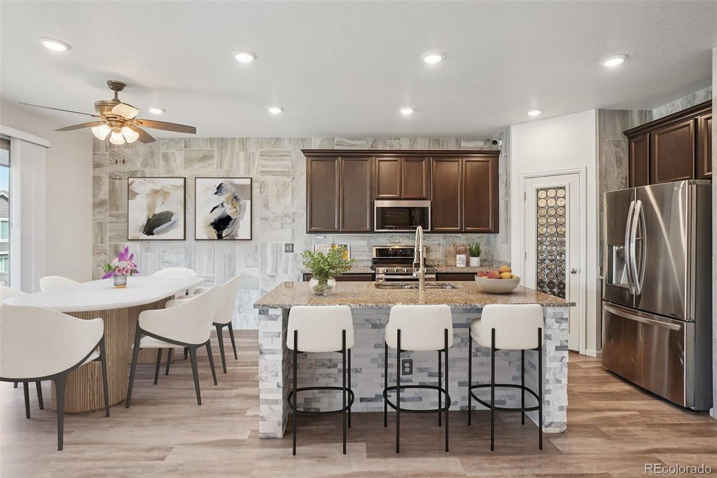 Stunner in Buffalo Highlands! This delightful two story home with a finished basement has been extensively upgraded for the new owner! The main level features a gourmet kitchen with stainless appliances, granite counters, stylish cabinets, large island with ample seating, bullnose corners, separate dining space, great room and patio with views ideal for entertaining. The upper level floor plan is perfect with its large primary suite with mountain views, a spa-like shower and walk in custom closet system. Additionally there are 2 more bedrooms upstairs plus a 5 piece full hallway bathroom, loft and office space that is bright and cheery. The finished garden level basement was fully permitted and offers an additional bright and open flex space complete with TV, gorgeous electric fireplace, microwave and fridge. Complete updates include: fully PAID solar with battery backup, owned security system, solar tube lighting, retractable awning for deck, fully landscaped backyard, gardens, extra trees/shrubs for privacy, tankless water heater and softener, sump pump, additional concrete walkway/patio, decorative stone window well covers, new garage door and opener with its own camera. Inside the home you will appreciate the quality plantation shutters, bullnose corners, custom blinds throughout, some new windows, additional ceiling fans, custom tile work, custom closet systems and more. Enjoy easy access to DIA, Rocky Mountain Wildlife Preserve, downtown Denver & Brighton Crossing. Up and coming with new dining, shopping & entertainment options coming as well as a brand new neighborhood school and multiple community events throughout the year. Every surface of this home has been improved and upgraded, don't miss out on the chance to make this beautiful home yours today!