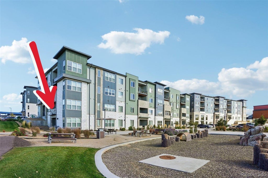 Welcome home to elevated luxury living with stunning sunset views in this corner-unit condo in Parker’s Trails at Westcreek! This turn-key residence is defined by intentional design, seamless flow, and refined finishes, courtesy of the ‘Ouray White’ design package, including LVP flooring, grand 9’ ceilings, granite counters, and a spacious covered patio. The open floor plan is ideal for entertaining and functional living. Enjoy preparing meals in the upgraded kitchen, featuring an oversized center island, a stainless steel appliance package, a tile backsplash, ample white cabinetry, and a pantry. The patio is the ideal spot for a morning cup of coffee or al fresco dining, while taking in views of the community park directly across the street and enjoying endless sunsets and views of the Rocky Mountains. The primary suite is a true sanctuary, complete with oversized windows, a sizeable walk-in closet, and an ensuite 4-piece bath with a glass walk-in shower. Additional features of this unit include two generously sized secondary bedrooms, a full bath, in-unit laundry, and a 1-car attached garage with room for storage. Trails at Westcreek is only minutes from endless shopping and dining, AdventHealth Parker Hospital, the Cherry Creek trail, and major roadways. Experience luxury living in an ideal setting, book your showing for 9295 Twenty Mile Rd today!