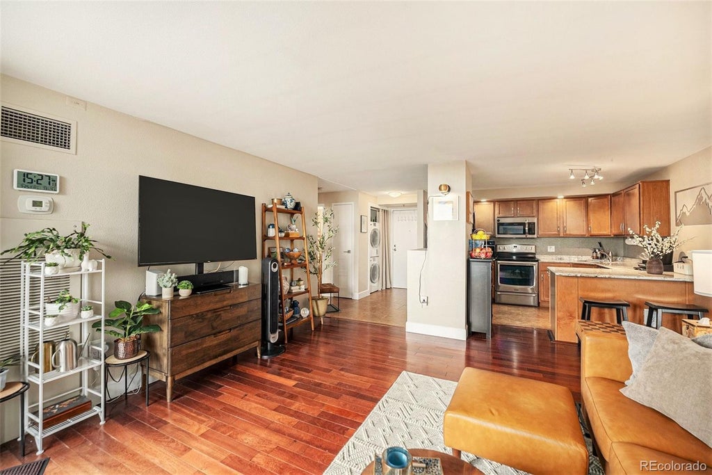 This updated 2-bedroom, 2-bath end-unit condo offers the perfect blend of comfort, style, and convenience. The open-concept layout features a spacious kitchen with granite countertops and a breakfast bar, all flowing into a bright living area with direct access to a private balcony overlooking the mountains. The primary bedroom includes a private en-suite ¾ bath, while the second bedroom is located near a full hallway bath, ideal for guests or roommates. Both bathrooms feature heated floors for a touch of everyday luxury. In-unit laundry and two deeded garage parking spaces add unbeatable convenience. The Parkway community offers top-tier amenities including a refreshed lobby, fitness center, business center, movie room, clubhouse, pool, and rooftop patio—plenty of options for both relaxation and entertaining. Located in the heart of Denver’s Lincoln Park/Art District, you’ll be just minutes from the 16th Street Mall, the Art Museum, Cherry Creek Trail, and the Santa Fe Arts District known for its First Friday Art Walks, galleries, and dining. Urban living doesn’t get more convenient or more affordable than this.