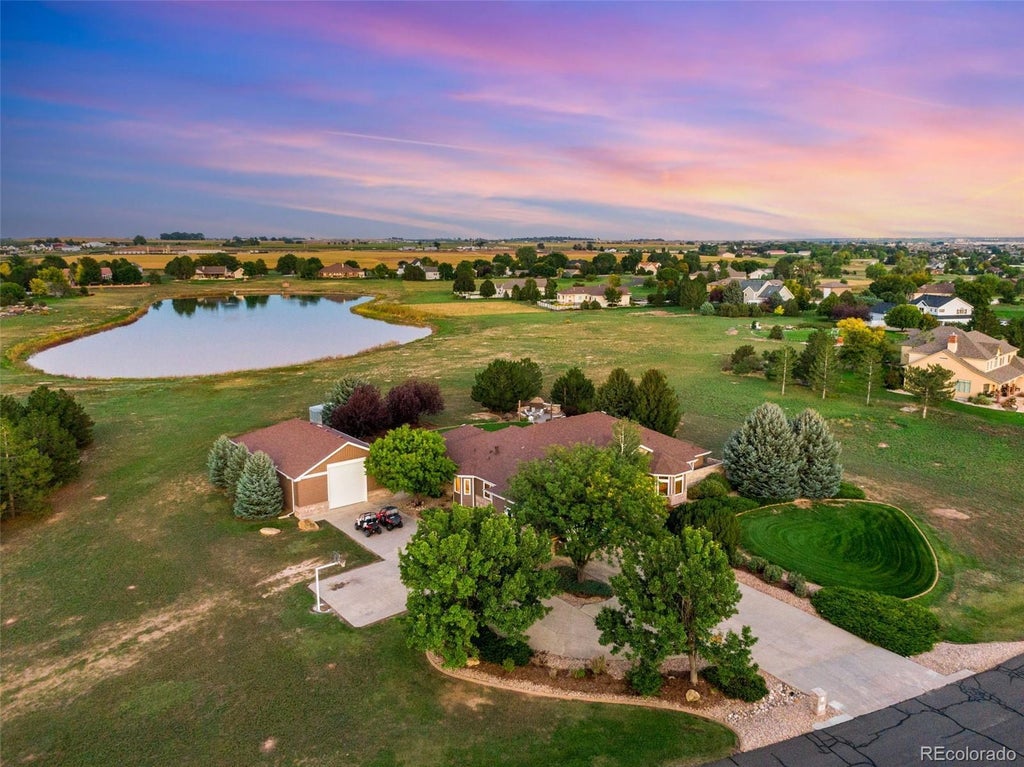 Open House Sat 4th and Sun 5th 12-3PM. Going Active on Wednesday. Pre-Inspected with 1 Year Gold Plan Blue Ribbon Home Warranty. This sprawling ranch sits on a 2.53-acre lot and features nearly 6,000 total square feet with 5,829 finished. The property includes an oversized 628 sq. ft. attached garage plus a 1,560 sq. ft. detached RV/Boat/Toy garage/shop. Incredible finishes inside and out. The main level offers a spacious foyer, formal dining, formal living, laundry room, great room with gas fireplace, three guest bedrooms (one easily used as an executive office), and a primary suite with retreat, walk-in closet, and five-piece bath. The kitchen boasts cityscape cabinets, granite slab countertops, a large center island, pantry, and stainless-steel appliances. The professionally finished basement includes three recreation spaces, a family room with a second gas fireplace, a flex room, and two additional bedrooms. Two high-efficiency furnaces, two water heaters, two AC units, and many more upgrades throughout, including hardwood floors, vaulted ceilings, iron railing, tile, six-panel doors, and a premium lighting package. The exterior features mature landscaping, a front courtyard, and a large covered backyard patio with beautiful lake views, sprinkler/drip system, room for gardens, outdoor bar and water feature. The west-facing front provides plenty of natural sunlight and snow melt for the driveway, plus stunning nightly sunsets, while the east-facing back offers cool summer shade, lake views, and breathtaking sunrises. Call today for a detailed list of features, a floor plan, or to schedule a private showing.