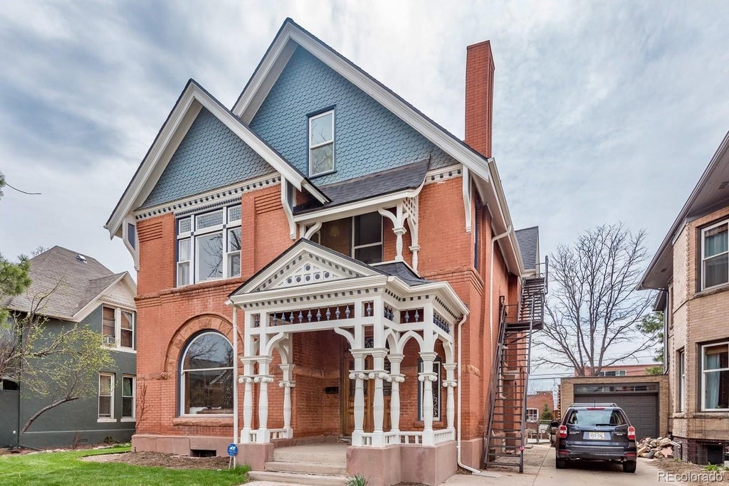 Spectacular historic Victorian mansion blending classic finishes with modern conveniences! An immediate sense of awe fills you upon entering the home as you're greeted by ornate detailed woodwork throughout the foyer and staircase. Artisan fireplace mantles, numerous stained-glass windows and 10' functioning pocket doors are among the well-preserved features. The renovated kitchen has been updated with custom cabinets, Thermador appliances, period specific soapstone countertops and a back staircase to the second level. Here you will find spacious guest rooms that easily configure into a home office or study, a laundry closet, and a fabulous master suite with two fireplaces, a walk-in closet and a private balcony to enjoy your morning coffee. Ascend the newly carpeted stairs to the third level, pausing at the toot enjoy panoramic mountain views to the West. Creative renovations have maximized usable space with additional guest rooms, a 3/4 bathroom and a front recreation room pre-wired for an entertainment system. the semi-finished basement contains a photography darkroom and workshop, but has limitless potential to finish as a 2 bed, 3/4 bath short or long term rental with a private separate entrance! The backyard oasis offers both a brick and slate patio, garden beds and a two car garage with the potential to add a "pop top" studio apartment. An absolute must see, come explore this architectural masterpiece and savor the experience of quintessential craftsmanship!