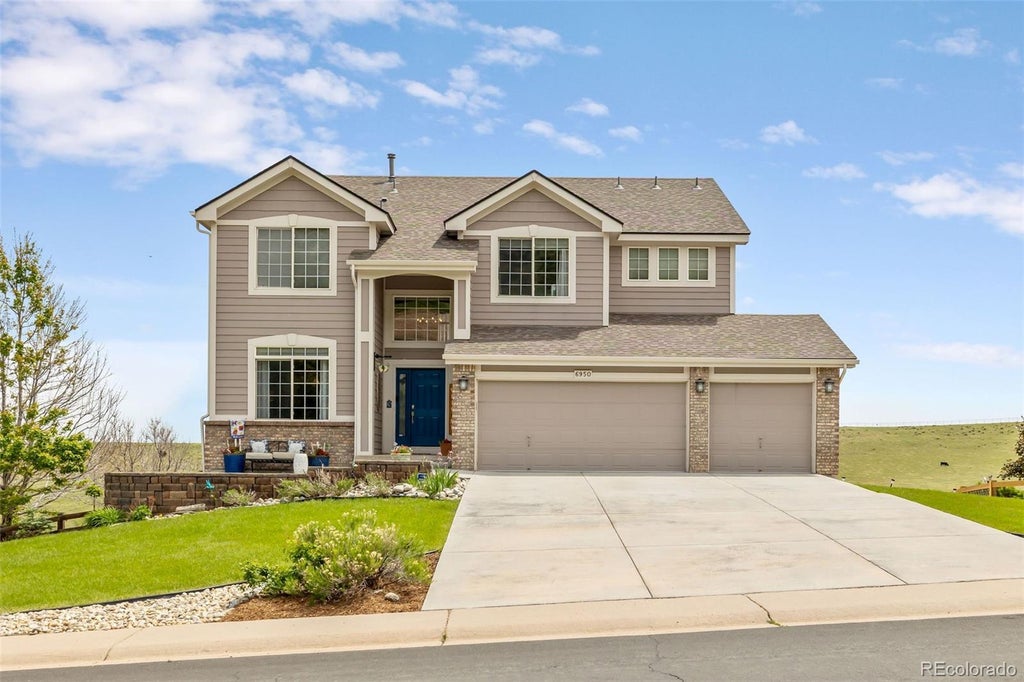 FRESHLY PAINTED INTERIOR in a fresh SW Sesame White color with crisp Pure White trim!! Move in ready for any buyers! Check comp at 6974 Blue Mesa Ln, that sold less than a year ago. Same layout, priced the same, and it did not have the $150k worth of upgrades this one has! Inside you are greeted with a fully remodeled eat in kitchen with sparkling quartz counters, a custom backsplash, a walk in pantry, 5 burner gas range, microwave/oven, and all new soft close cabinets. An additional bedroom, 3/4 bath, family room, and laundry round out the main level. Upstairs you’ll find a roomy primary suite with more amazing views, a five piece bath, and an enormous dressing room/closet, with its own island. The open layout upstairs also features a loft, two additional bedrooms, and another full bath. The fully finished walkout basement, has a fun media room (furniture and equipment stays). Also an additional family room, wet bar (could easily be converted to a kitchenette) and a roomy bedroom and bathroom. Outdoors you’ll find a gorgeous two level deck, and newer driveway. There is new sod in both front and back yards, and much of the rock and landscaping was replaced last year. Collectively, all these upgrades and updates take this home from special to spectacular. If you’re looking for a beautiful, peaceful home to shelter you and your family, you can stop looking right here. This is the perfect soft place to land. Please reach out to the agent/owner with questions and take a look at the property disclosure attached. Currently priced 68k below appraisal from June. Sellers are including a Home Warranty with purchase.
