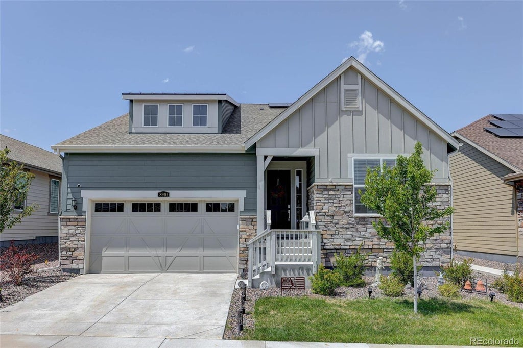 55+ Luxury, ranch style home. As you venture inside, you'll be greeted with nine-foot ceilings & two bedrooms that share a full hall bath with double sinks. Off the garage entry, is an ample mudroom for removing shoes & hanging coats, a spacious laundry room, and half bath conveniently located in the hall for easy access from the great room. The open floor plan seamlessly connects the living, dining & kitchen areas into a GREAT room. The kitchen is a chef's delight, featuring modern & updated appliances, ample granite countertop space, a center island with 4 eating spaces & plenty of storage. Working or studying from home has never been more comfortable, thanks to the dedicated office space offering privacy & focus. The back covered deck is to die for. This home boasts five generously sized bedrooms. The primary suite is your private retreat, complete with an en-suite bathroom, large walk-in shower, double sinks & a walk-in closet. The partially finished basement features a guest setup with a kitchenette, additional family room & fireplace & two spacious bedrooms to accommodate guests or providing everyone with their private space, plus a shared full hall bath. There is ample storage space in the basement to keep your home organized. Enjoy the simple life in a beautifully landscaped. Inspiration active adult community, with exclusive access to the Hilltop Club is a resort-style clubhouse offering a pool/tennis courts/bocce ball courts/pickleball courts/fitness center/yoga studio/ library/demonstration kitchen/meeting rooms, and outdoor patio with breathtaking mountain views. Revel in a lifestyle enriched by countless community events/classes/clubs/including a complimentary summer concert series. Explore events at www.inspirationcolorado.com to discover it ALL. One percent below market interest rate available through preferred lender. Another idea, Live upstairs & rent the basement