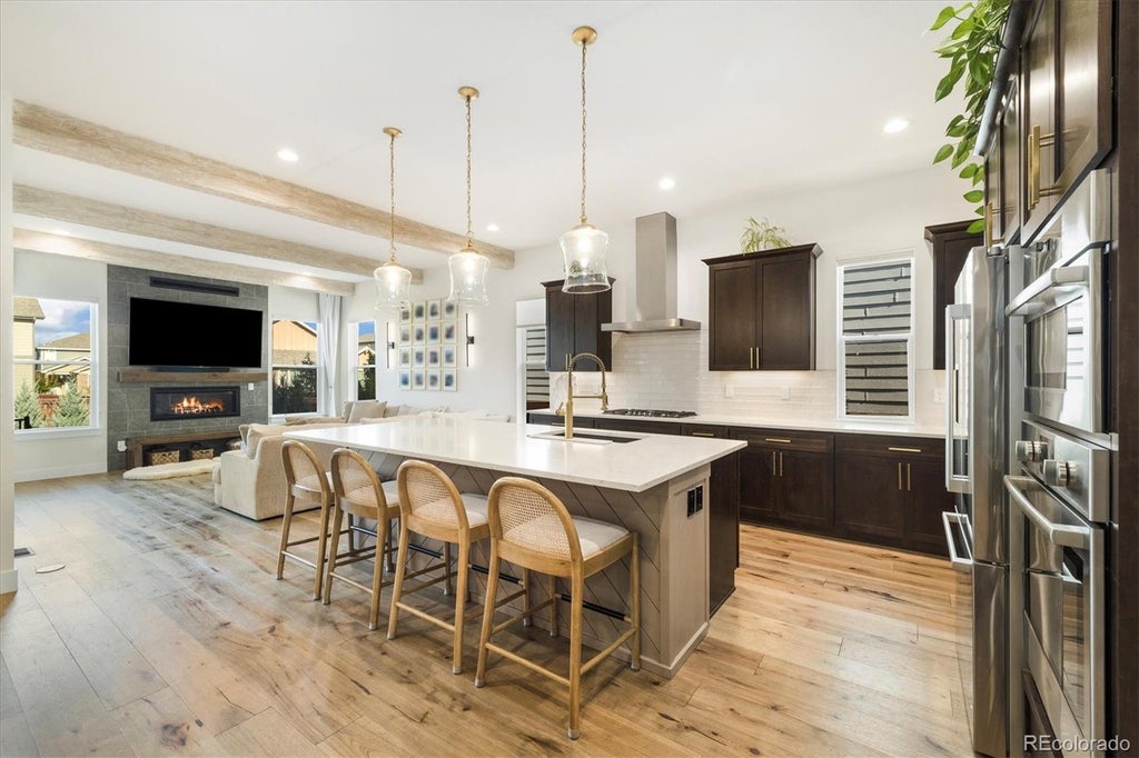 Upgrades galore on this 5 bed, 5 bath Trumark gem w/ a finished basement! All new coach lights and pendant on front entry. Beautiful trees, flowers and landscape rocks in front yard! New glass front door gives the entry amazing natural light. Black accent wainscoting in the entry hall and dining area. Shiplap added to the kitchen island. Custom mudroom bench and shelves. Gold Kitchen faucet & gold hardware on cabinets. Gas burners, huge walk in pantry. Stunning wood beams added to the living room to go w/ the fireplace and mantle. Stainless steel appliances. Engineered hardwood in the kitchen, dining, living room and hallways. Main level Primary bedroom and Laundry. Incredible custom accent wall above stairs to the basement with a classy chandelier surrounded by metal railings. Wood accent wall in primary bedroom from the Wood Veneer Hub. Custom closet design in Primary. Laundry room with Samsung washer/dryer on matching pedestals w/ a utility sink and cabinets for storage. Updated mirrors in all bathrooms. Ceiling fans in 3 bedrooms. A flex room that is currently used as a dog room that has a dog door that leads out to a run that has artificial turf. Finished basement with a wet bar, beverage fridge, living room/rec room areas, a large bedroom with walk in closet, a 3/4 bathroom and two unfinished storage areas totaling over 1,000 sq ft. 2 tankless water heaters for endless hot water. A whole home water filtration system to remove all the fluoride, chlorine, pesticides, etc. Covered back patio w ceiling fan. Lower patio with stamped concrete, gas valves for your grill, and fire pit. Salt water Caldera spa. Incredible landscaping that includes trees that keep their foliage for year round privacy as the continue to grow. Raised garden beds. Huge landscape rocks. Garage transformed w/ dark gray paint and epoxy flooring w attached cabinets and tool boxes. Enjoy everything Raindance has to offer, Golf, parks, dining, resort style pool, tubing, concerts, pickleball.