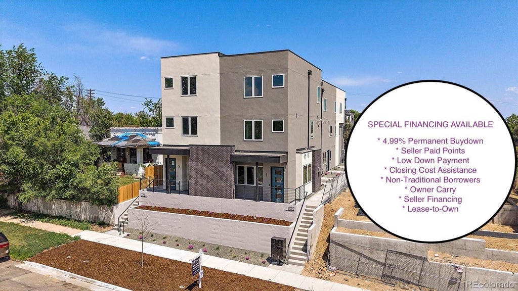 Luxurious Brand New Townhome in South Sloan’s Lake. Downtown Facing Rear Unit Perched Above the Street Capturing City Views. Thoughtfully Designed Floor Plan Offering Three Bedrooms, Four Baths, Office, Laundry Room, Private Outdoor Space and Parking. Seamless Integration of Main Floor Spaces with Voluminous Natural Light, Nine Foot Ceilings and Premium LVT Wide Plank Flooring. Kitchen Features Quartz Counters, High End Cabinetry, Herringbone Backsplash and KitchenAid Appliances. Office Space and Generously Sized Laundry Room Complete the Main Level. Entry Level Has Attached Garage, Guest Bedroom and Full Bath. Primary Suite Accommodates a King Bed with End Tables Plus Oversized Closet and Private En Suite. Primary Bath Offers a Double Vanity and Large Elegant Shower. Additional Third Story Bedroom with Own Bathroom. Central AC and Ceiling Fan in Every Bedroom. Terrific House Hack Opportunity or Roommate Arrangement Where Everyone Would Have Their Own Bath. Storage Under Main Floor Stairs Plus Full Crawlspace with Vapor Barrier. Deck Adjacent to Kitchen with Gas Grill Hookup and Downtown Views. Ideal Proximity to Sloan’s Lake, Paco Sanchez Park, Light Rail, Alamo Drafthouse, Little Man Ice Cream, O’Dell Brewing, Starbucks, ChoLon, Gusto, The Patio and Myriad Other Dining & Entertainment Options. Low Down Payment Options Without Mortgage Insurance Available. Plus, Alternative Financing Options for Non-Traditional Borrowers Through Builder's Lender. Good Value for this Size of Brand New Home and Quality Craftsmanship in Northwest Denver. ***Financing Terms Dependent on Buyer Qualifications***. ***Photos are From Staged Unit #1***