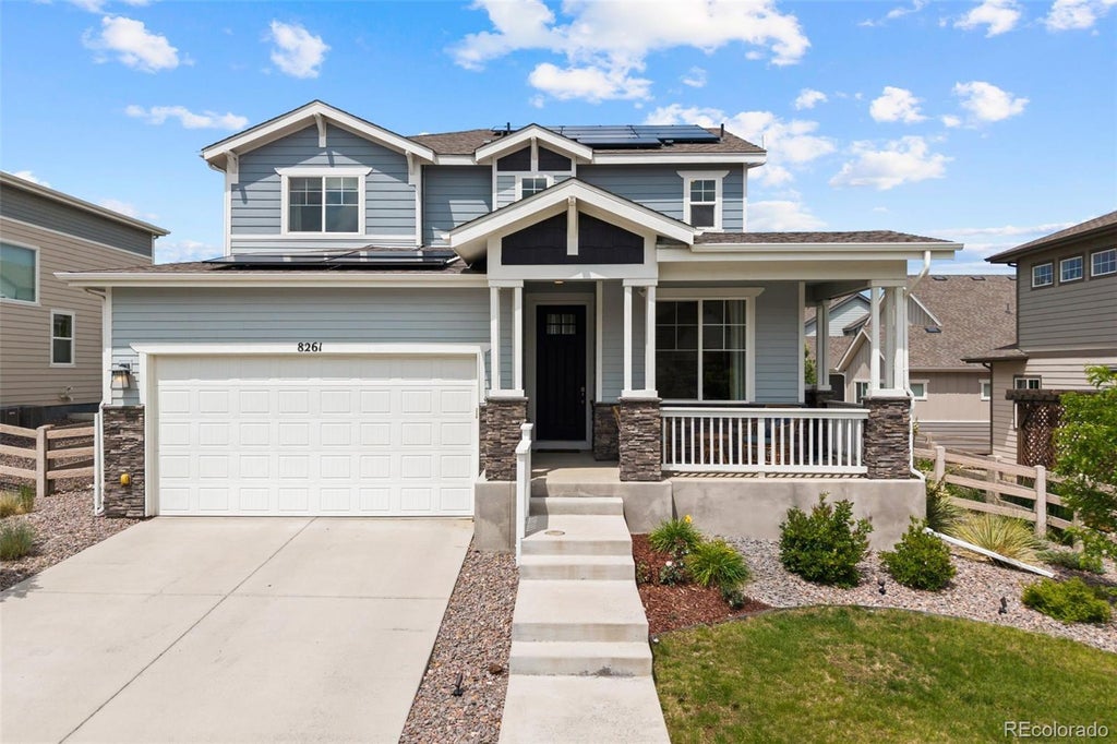 Welcome to this stunning former model home in the highly sought-after Sterling Ranch neighborhood! This beautifully designed home features a spacious layout, lots of natural light, and modern finishes throughout. The main floor features a cozy family room with a gas fireplace and custom built-ins, dining area, a convenient powder room, and a large front office. The upgraded kitchen features stainless steel appliances, quartz countertops, an oversized island, and a walk-in pantry. Step outside to the beautifully landscaped backyard with a patio—ideal for relaxing, and entertaining. Upstairs, the spacious primary suite includes a luxurious 5-piece bath and a generous walk-in closet. Two additional bedrooms, a full bathroom, a convenient upstairs laundry room, and a versatile loft—complete the upper level. The full basement is ready for your personal touch and offers plenty of room to expand. Additional highlights include: Paid-off solar panels for instant energy savings, 220V outlet in the garage for EV charging, Smart home system and built-in surround sound, upgraded lighting and ceiling fans throughout, extended 2-car garage with additional storage space. Set within the prestigious Sterling Ranch community, residents enjoy an unmatched lifestyle with access to a coffee shop, brewery, sports courts, several miles of scenic trails and open space, a resort-style pool, a state-of-the-art recreation center, fitness center, and an exclusive clubhouse. BONUS: VA assumble loan option, Offering buyers a $4,500 credit to use toward a rate buy-down or closing costs with the preferred lender! Don’t miss the opportunity to call this beautiful home yours!