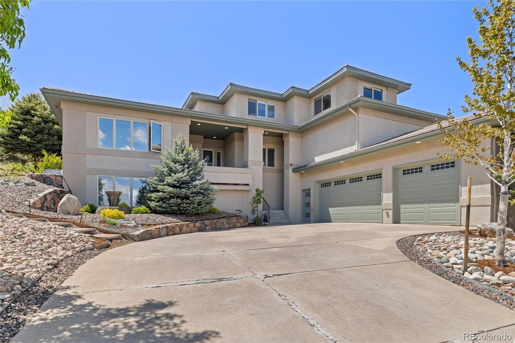 Step into this stunning semi-custom contemporary home, nestled in the highly sought-after gated community of Roxborough Park a neighborhood celebrated for its dramatic red rock formations, just down the road from the famed Arrowhead Golf Course, this location is a golfer’s paradise and a nature lover’s respite. 2 minute walk to Arrowhead Golf Course Clubhouse. Play a round of golf or dine at the club house and enjoy amazing views! Wildlife galore! Deer, wild turkeys, black bears and more! Boasting 4,500 total square feet, this residence features 5 bedrooms, 3.5 bathrooms, and a spacious 3.5-car garage. It backs to open space and is directly below the 9th tee box of Arrowhead Golf Course, offering both privacy and scenic views. The vaulted great room welcomes you with a cozy gas log fireplace, rich hardwood flooring, and a stylish carpet inlay—perfect for relaxing or entertaining. New carpet and paint! through out! The adjacent kitchen features granite countertops, an island, and a walk-in pantry for extra storage, plus plantation shutters! The main-floor primary suite is a luxurious retreat, complete with dual granite top vanities, an oversized Jacuzzi tub, and a large walk-in closet. Upstairs, two generously sized bedrooms share a Jack-and-Jill bathroom with tile flooring and granite countertops. A loft area opens to the great room below, adding a sense of openness and light. The fully finished basement offers exceptional flexibility, designed as a fully functional Next Gen Suite with 2 bedrooms, a full bathroom with a jetted soaking tub, a full kitchen, and a large living/entertainment space ideal for guests. The 3.5-car garage features high ceilings, built-in cabinets, and a designated workspace, ideal for hobbies or storage. Outside, enjoy virtually maintenance-free hardscape, with amazing views and a great patio pergola to enjoy!