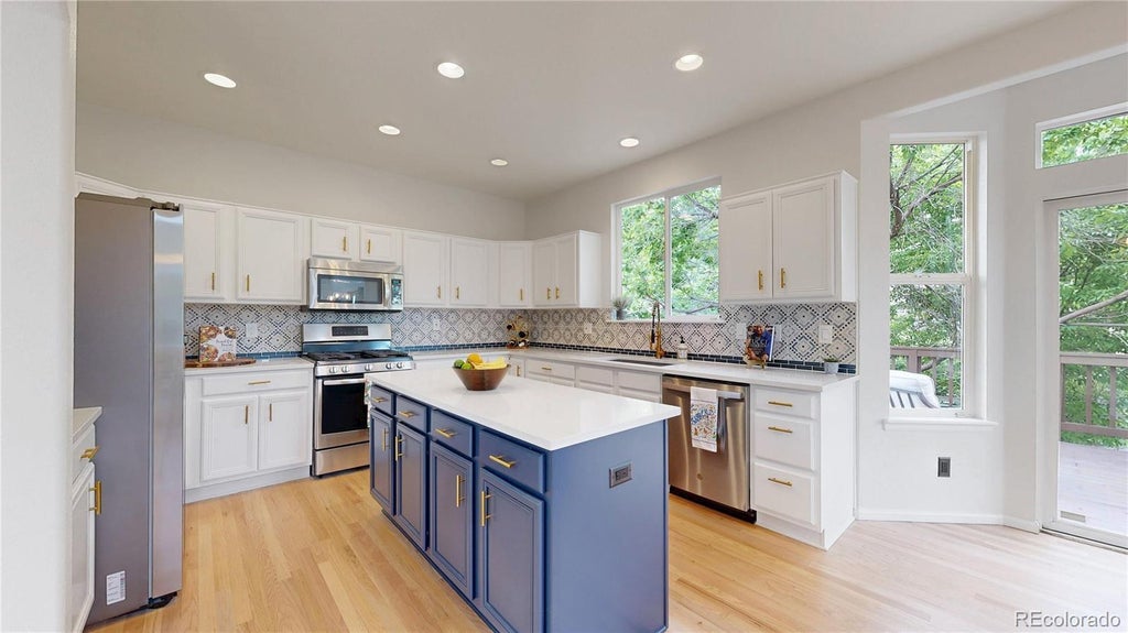 This beautifully updated home shines with fresh finishes throughout! Refinished natural hardwood floors and new carpet on the main level provide a clean, modern foundation. The kitchen features quartz countertops, a new tile backsplash, stainless steel appliances, walk-in pantry, center island, and a bar area with wine cooler and floating shelves—perfect for entertaining. Step into the soaring foyer with dramatic ceilings and a curved staircase, complemented by a new contemporary light fixture. The formal living and dining rooms feel open and airy, ideal for gatherings. A main-floor study near the front entrance makes an ideal home office or workspace for a small business. The great room boasts a 19’ ceiling, expansive windows, ceiling fan, and a gas fireplace with new Carrara marble surround, creating a stunning focal point. The main floor powder bath has also been refreshed with a new vanity and sink. Upstairs, a landing overlooks the great room before leading into the spacious primary suite, featuring vaulted ceilings, a ceiling fan, and breathtaking foothill views. The 5-piece primary bathroom includes new quartz countertops, modern rectangular undermount sinks, an oversized soaking tub, and updated lighting. Three additional bedrooms share a full hall bath, also with new quartz countertops, dual sinks, and a medicine cabinet. The unfinished basement includes a rough-in for a future bathroom and offers endless potential. The utility room features a newer furnace and water heater, along with a radon mitigation system. A huge crawl space provides extra storage options. The two-car stall includes extra-deep 28’ bays perfect for a large truck or recreational gear, + a third stall that is 18' deep— The backyard offers excellent privacy with mature trees, a large deck for entertaining, and the relaxing ambiance of the neighbor’s water feature—without the upkeep!