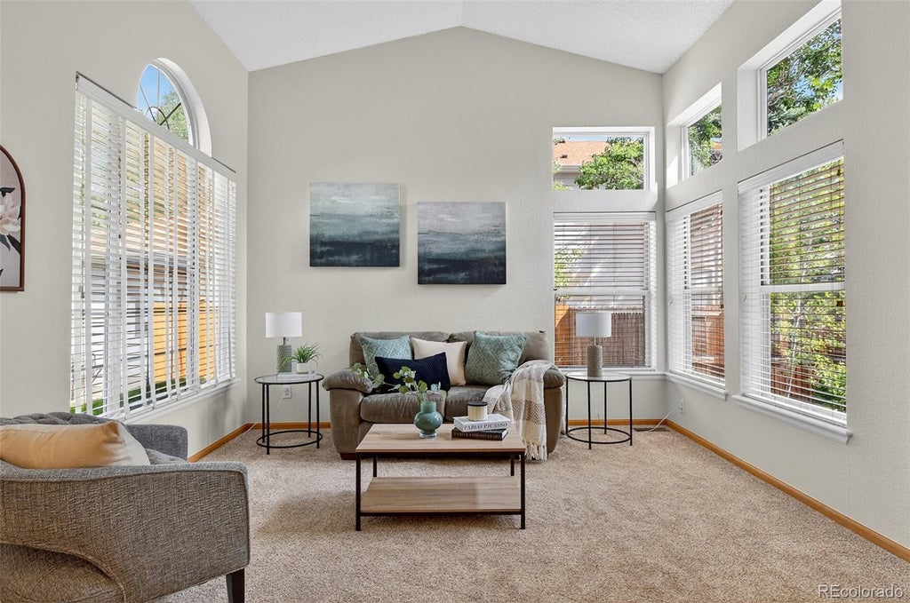 This beautifully maintained tri-level home offers 3 bedrooms, 3 baths, and 1,623 square feet on the main and upper levels, with potential to expand in the unfinished basement. Highlights include walnut-stained plank laminate flooring, hardwood floors in the kitchen and entry, and fresh interior paint throughout. Nestled on a landscaped lot with mature trees, a level backyard, and a relaxing deck, the home combines comfort and charm inside and out. The hardwood entry leads into a light-filled kitchen with vaulted ceilings, white soft-close cabinets, updated stainless steel appliances, and a welcoming eat-in area overlooking the cozy family room, which features a gas fireplace, soaring two-story ceilings, and sliding glass doors to the backyard. This level also offers a powder bath and dedicated laundry room. Upstairs, a full bath is shared by two bedrooms, while the private primary suite is set on its own level with vaulted ceilings, a ceiling fan, walk-in closet, and ensuite bath, creating a peaceful retreat. Additional updates include a new irrigation timer (2020), new carpet and laminate flooring (2017), new 4" front gutters (2022), and a new garbage disposer (2023), New Irrigation Drip System added (2025).