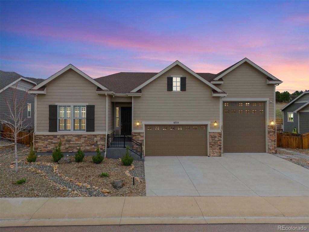 Welcome to your dream home at 6725 Mentha Drive in beautiful Castle Rock, CO! This stunning 4-bedroom, 5 bathroom residence offers 4,616 square feet of luxurious living space, perfectly situated on a spacious 9,714 square foot lot. Designed with a plethora of features, this home boasts an expansive open kitchen with granite counters, stainless steel appliances, and a convenient island for culinary adventures. The large living room offers a fireplace, plantation shutters, automatic remote window coverings, recessed lighting and 20ft glass window wall slider opening up to the private patio and open space. The main floor primary suite is a serene retreat, complete with a custom closet and an elegant ensuite featuring a separate shower and double sinks. Enjoy cozy evenings in the home theater and make entertaining a breeze with the finished basement, featuring a wet bar and media/recreation room. This home is equipped with modern conveniences like a smart thermostat, video security, and a sound system. The large 7 car, climate controlled garage offers RV parking with a custom loft, while the back yard opens to tranquil open space, providing a perfect blend of privacy and beauty. Location, Upgrades and Views make this one off home that was built and finished with so much attention to detail an absolute win for buyers. Additional features and upgrades. Built with all the structural add-ons from the builder increasing the main level ceiling height to 10ft and the basement to 9ft. 5.1 Surround sound. 20ft Glass window wall slider. Lot premium was around $80,000. Linear Gas fireplace. Oversized glass shower with both rain shower and standard shower head. Front steps and back porch cement has been sealed and coated. Main level office. Oversized pantry. Electric shades. TV's. Upgraded ceiling fans. Garage offers an epoxy coated floor, heating and cooling system, side entrance, custom loft, 220/110 hookups, RV parking, water spigot, insulated, overhead lighting.
