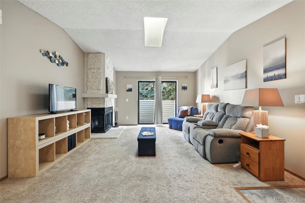 Bathed in natural light, this charming second-story condo boasts an airy open layout with vaulted ceilings and skylights. The updated bathroom brings a fresh, modern touch, while the garden view from your private deck creates the perfect backdrop for morning coffee or evening unwinding. A spacious bedroom with a custom walk-in closet, a cozy fireplace for gatherings, and the comfort of a newer furnace and central air make it truly move-in ready. Enjoy the convenience of in-unit laundry, reserved parking, and a prime location just minutes from Buckley Air Force Base, light rail, shopping, and everyday amenities. More than just a condo - it’s your next retreat. All furniture can stay if Buyer wants.