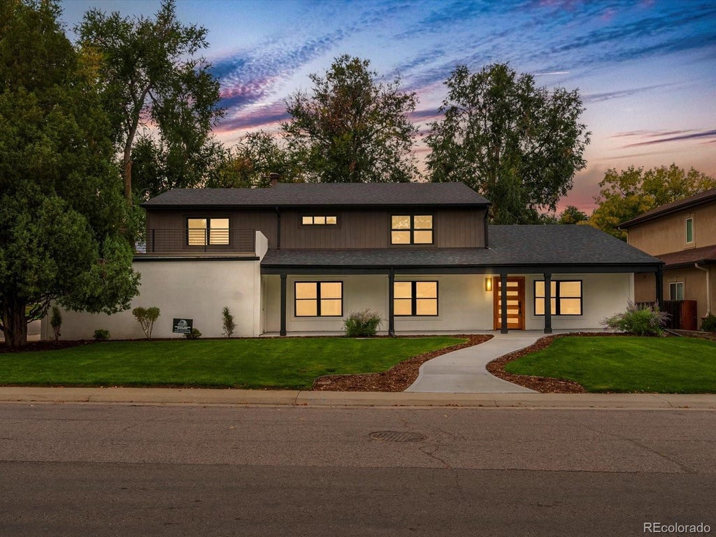 A rare opportunity on Eisenhower Park—this fully reimagined home lives like new construction, blending modern design, thoughtful functionality & elevated luxury. At the heart of the home, the custom-designed eat-in kitchen was created for both daily living & entertaining. Seamless indoor-outdoor flow connects this chef’s space—complete with designer cabinetry, quartz countertops, premium appliances & a hidden walk-in pantry—to a spacious backyard with dual patios. The covered patio, with gas hook-up, invites year-round gatherings. In the dining room, illuminated coffered ceilings, a statement chandelier & expansive windows bathe the space in natural light. Wide-plank flooring, new windows, custom railings & a white oak entry door establish a refined yet welcoming atmosphere. Two additional main-level bedrooms, a full bath & a mudroom with laundry complete the floor with both elegance & practicality. Upstairs, a versatile loft offers the perfect setting for a home office, kid space or fitness retreat. The primary suite is a sanctuary of sophistication, featuring dual sinks, striking quartzite stone, a freestanding soaking tub & an oversized walk-in shower. A custom closet system by Closets by Design elevates both function & style. Extending from the primary suite, the south-facing private rooftop Trex deck crowns the home with sweeping park views & unforgettable sunsets. Upstairs, a generous secondary bedroom includes its own bath & walk-in closet. Peace of mind comes with extensive upgrades: new roof, gutters, fascia, soffits, Trex decking, railings, siding, 3 mini-splits, baseboard hot water registers, hot water heater, plumbing fixtures & more. From its refined interiors to its unmatched park-side setting, this residence delivers a rare blend of luxury, lifestyle & lasting value in one of Denver’s most desirable neighborhoods. Proximity to Eisenhower Park, the Rec Center, High Line Canal, Wellshire Golf Course & endless shopping/dining further elevate its appeal.