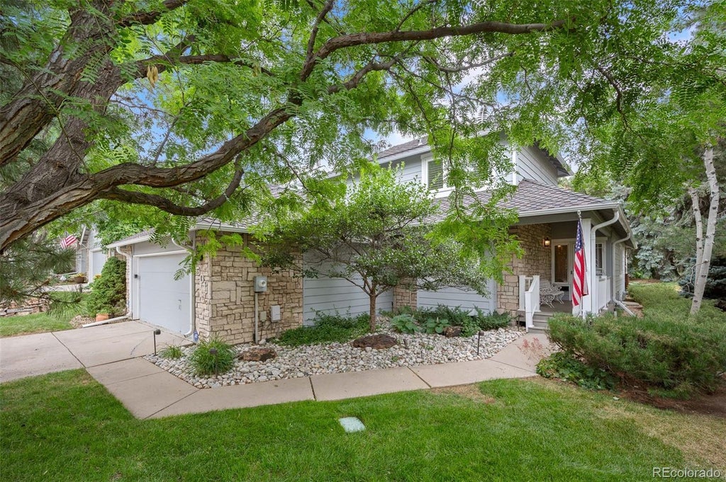 One of Stoney Brook’s best locations and featuring a much-desired main floor primary suite, this home has been loved and cared for since 1987 by its original owners. Featuring an abundance of outdoor spaces, the unit looks out on Wallace Park and has both a private interior deck as well as a secluded back deck overlooking one of Stoney Brook’s 15 ponds. The open-concept living and family rooms feature vaulted ceilings, French doors, windows overlooking the park and a gas fireplace. The eat-in kitchen opens into the family room and hosts hardwood floors, a center island, newer cabinets, built-in desk, tall storage cabinets and an adjacent laundry closet. Nearby is a spacious dining room, guest bath and entry foyer. The isolated main-floor primary suite looks out on the pond and has private access to the back deck. Featuring vaulted ceilings, this large bedroom also boasts a generous walk-in closet and a 5-piece updated bath with granite counters, newer cabinets, newer tile and a distinctive rock-wall shower. Upstairs the home offers 2 private bedrooms both with walk-in closets and connected by a Jack-n-Jill full bath. An extremely large unfinished basement with 3 egress windows provides extensive storage or the opportunity for a new owner to design and finish to their preferences. The list of recent improvements include a retractable rear-deck awning with new canvas 2 years ago; new refrigerator and oven in 2023; roof and gutters new in 2017; Pella windows replaced in 2015; newer hot water heater; 90% efficient HVAC; fireplace and niche remodel; and natural gas and water line added to the interior deck. Located in a park-like setting in DTC, Stoney Brook offers 54 acres of lush gardens, ponds and streams. Amenities include on-site management, clubhouse, pool, hot tub, tennis court, pickle ball courts and walking paths. Visit www.8505ETempleDrUnit501.com for more details.