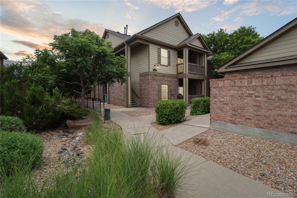 Welcome Home! This upper floor unit boasts natural light, high and vaulted ceilings, open floor concept, unobstructed mountain views and so much more! The large U shaped kitchen has counter space on 3 sides, laminate flooring, and 42" cupboards. Dining room is adjacent and open to kitchen and living room. The spacious living room has a gas fireplace, vaulted ceiling and a sliding door to the west facing balcony with that front range view! The balcony also has a manually activated sun shade. The secondary bedroom is west facing, getting that same beautiful mountain view. Full guest bathroom is between the laundry closet and secondary bedroom. The laundary closet has been customized with cupboards and shelving. Oversized primary bedroom has vaulted ceiling, attached primary bathroom equipped with 2 sinks and garden tub, and access to the large walk-in closet. Lastly, you can park your car with peace of mind in your detached garage. Whether you're starting out or starting over, this condo is the perfect for you! Enjoy easy access to E470 and I70, you can be anywhere in a matter of minutes! Gun Club Road will take you all the way to Southlands, where you'll find dining, shopping and entertainment. Quick drive to Anschutz Medical Campus, Denver International Airport, and to Buckley Space Force Base. BONUS: The assessment on this unit is paid off!