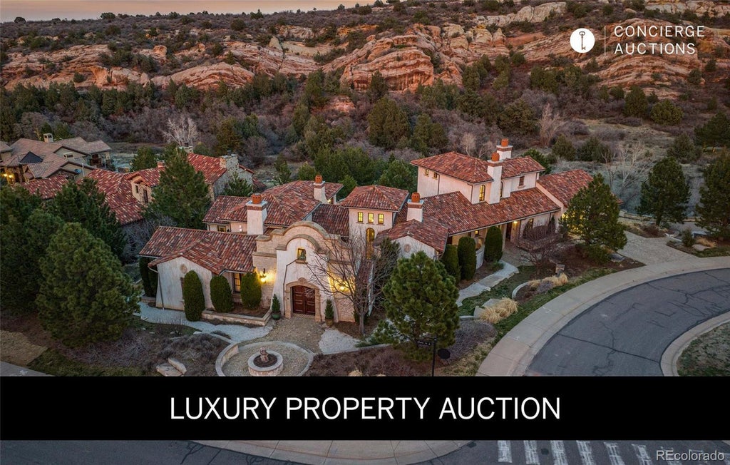 LUXURY PROPERTY AUCTION: 15-29 OCTOBER. Accepting Starting Bids Through 15 October. Starting Bids Expected Between $4M–$5.5M. The submission of a starting bid can earn you up to a 50% reduction in buyer's premium. A Spanish Mediterranean masterpiece awaits within the exclusive gates of The Ravenna Country Club, where authentic lime plaster architecture meets Colorado's dramatic red rock landscape. This award-winning custom estate, "Vinero en el Cañón del Río," commands over 10,000 square feet of sophisticated living space featuring museum-quality craftsmanship and premium imported finishes. An enclosed courtyard reveals a stunning patio with Naples-imported wood-fired oven and panoramic Dakota Hogback vistas. The crown jewel wine cave, meticulously crafted with temperature control and custom racking, earned Project of the Year recognition. Four luxurious bedroom suites plus attached casita, multiple entertainment spaces, and full pub-style bar create an unparalleled sanctuary within this premier private club community offering championship golf and world-class amenities.
