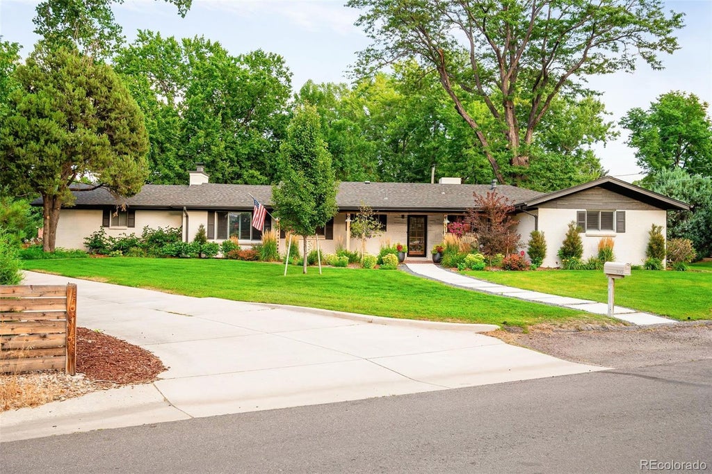 This stylishly remodeled 6-bedroom, 4-bath ranch offers the rare opportunity to live directly across from Applewood Golf Course, with sweeping views of the greens, Table Mesa, and Colorado sunsets. Nestled on a tree-lined street in one of the most sought-after neighborhoods, the home blends modern updates with timeless character and provides the perfect setting for Colorado’s indoor/outdoor lifestyle. Step inside to an open floor plan filled with natural light from expansive windows. Beautiful hardwood floors flow through the main level, connecting the spacious living room, dining area, sunroom and gourmet kitchen. The kitchen features upgraded finishes and easy access to both front and back patios—ideal for entertaining. Three bedrooms on the main level include a generous primary suite featuring an updated spa-like bath, a walk-in closet with a secondary washer/dryer, and a versatile bonus space perfect for an office, nursery, or quiet retreat. The fully finished basement expands the living space with a large family room anchored by a wood-burning fireplace, plumbing for a wet bar, and three additional bedrooms. One bedroom includes an en-suite bath, another has egress, and a non-conforming sixth bedroom currently serves as a gym. A newly updated full bath, a laundry room with utility sink, and abundant storage complete the lower level. Outdoor living is unmatched with a dining patio under a pergola, a covered seating area, and a fully fenced backyard. Car enthusiasts will love the two attached two-car garages, offering room for four vehicles, bikes, and gear. Other recent updates include: roof (2022), kitchen cabinets (2023), custom cabinetry (2023), kitchen island (2023), refinished wood flooring (2023), basement flooring (2023), custom interior shutters (20230, and expanded sprinkler system & landscaping (2023). Minutes to Golden, Clear Creek Crossing, bike trails, and with easy Denver access, this is Applewood living at its finest.