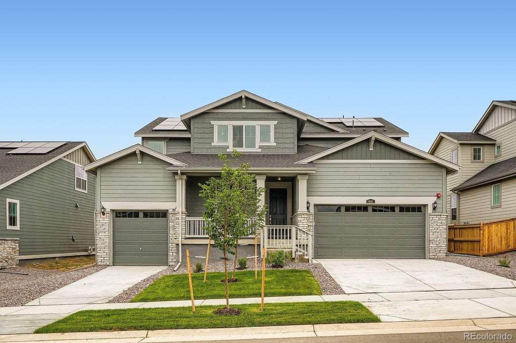 **Eligible for 3.75 FHA 5/1 ARM or 3.99% fixed rate on eligible clearance homes when using builder’s preferred lender – terms and conditions apply – ask for details** Move In Ready! Welcome home to the Super Home located in coveted Sunset Village and backs to open space. The main level features fantastic entertaining space! The gourmet kitchen overlooks the great room and breakfast nook and also has an abundance of cabinet space in the kitchen, a huge eat in kitchen island with quartz countertops and a large outdoor covered deck! The separated NextGen living space offers great options! A private living room and kitchenette provides great 'living space'. A large bedroom with an adjacent retreat area, laundry room and a 3/4 hall bathroom complete this flexible space! Use the NextGen space as a main floor suite, a true NextGen living space, or whatever suits your needs. Upstairs boasts an expansive primary suite with a retreat and en-suite spa style bathroom, oversized laundry room, 3 additional bedrooms, 2 bathrooms and a large loft area. The basement is unfinished waiting for your personalization. Some additional features include a huge rear deck, 3 car garage and solar panels. See everything Erie has to offer with it's small town feel, majestic mountain views, 63,000sf community center and 20,000sf community Library! Close to shopping/dining, trails and parks!