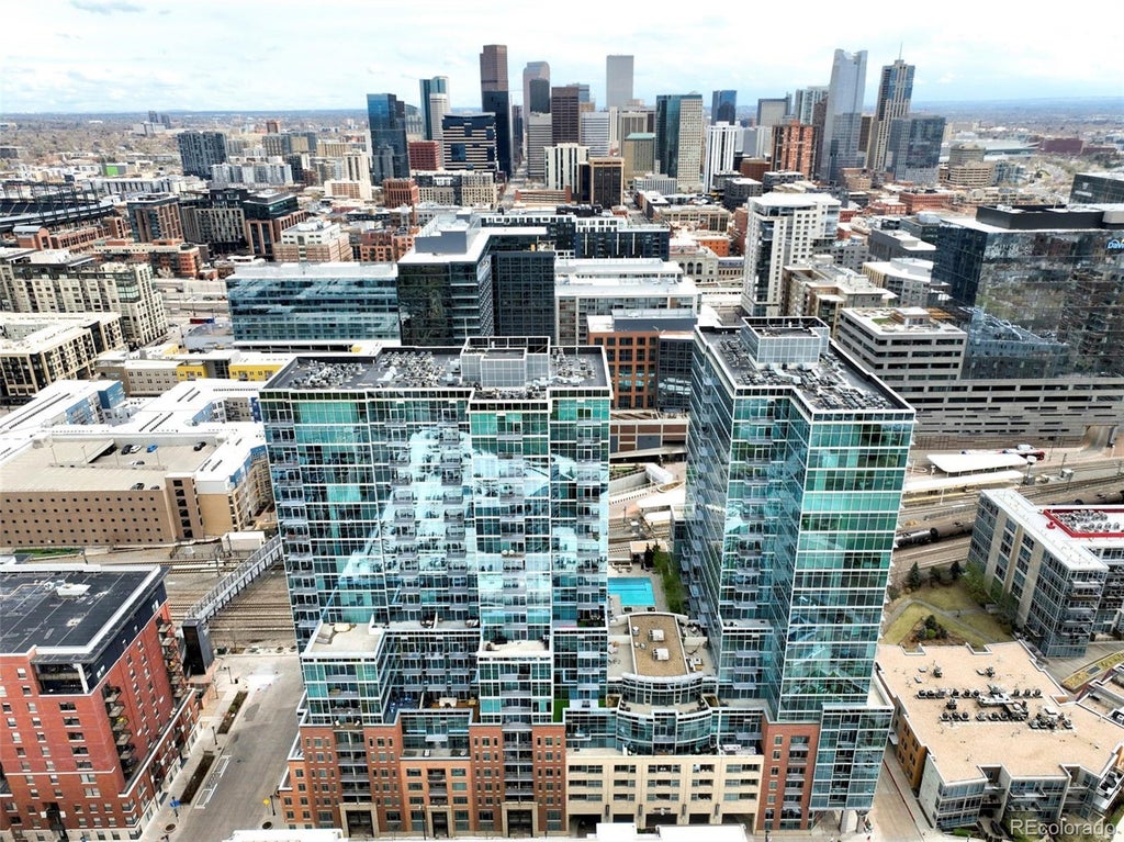 Poised in Denver’s coveted Glass House building, this Riverfront Park residence embodies the perfect fusion of modern design and urban luxury. Expansive floor-to-ceiling windows frame the sweeping views of the vibrant cityscape, filling the interior with abundant natural light. An open layout is enhanced by newly upgraded Porcelanosa flooring, industrial-chic concrete ceilings and a neutral palette that inspires a serene backdrop for city living. The sleek kitchen features stainless steel appliances, rich cabinetry and a stylish tiled backsplash, while the private balcony overlooking the pool offers an enviable outdoor retreat. Residents enjoy access to high-end building amenities, including a resort-style swimming pool, outdoor terrace, community room, fitness center, and full concierge services. With Union Station, Whole Foods, LoHi, the pedestrian bridge and premier dining and entertainment just moments away, this sunlit haven captures the essence of Riverfront Park living at its finest.