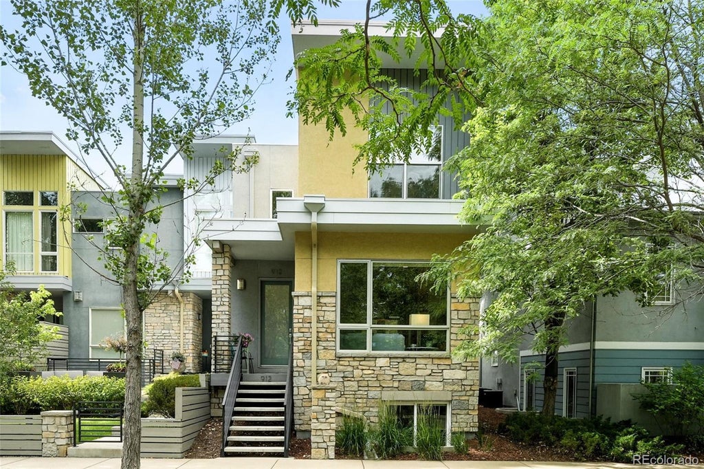 Welcome to this light-filled townhome with a coveted main floor master, located in the Prospect neighborhood of Longmont—named the "Coolest Neighborhood in America." Built by reputable, local green builder Markel, this home has stylish finishes, a spacious layout, and an unbeatable location, just three block to Prospect's numerous shops/restaurants. The main level features soaring ceilings and large windows that fill the living space with natural light. The spacious living room is centered around a modern fireplace and surround. The open-concept kitchen is equipped with stainless steel appliances, ample cabinetry, generous counter space, and an adjoining dining room. Just beyond the kitchen is a 1/2 bath and a sliding glass door that leads you to a cozy patio area that is the perfect setting for al fresco dining/lounging. Additionally, there's a dedicated laundry area, a main-floor primary suite with a luxurious 5-piece bathroom and a spacious master closet w/custom shelving. This home offers one level living at its finest. In fact, you just need to go one step from the garage and then you have access to the primary bedroom, laundry, living and dining areas! Upstairs, you'll find two additional bedrooms, a full bath and quaint loft area—perfect for an office, mini workout space, or meditation area.