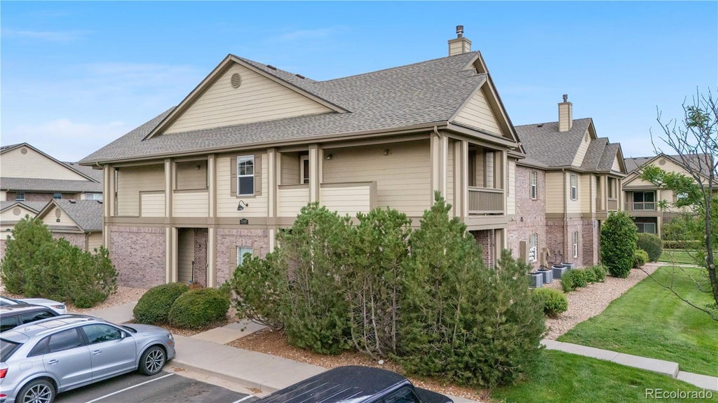 This beautifully maintained upper-floor home is move-in ready and waiting for its new owner. Enjoy brand-new carpet throughout and a spacious kitchen featuring tall upper cabinets and sleek slate appliances. A bright dining nook offers the perfect spot to enjoy your meals. The west-facing unit provides stunning views of the mountains, while the cozy living room boasts vaulted ceilings and a warm gas fireplace. Step outside to a large, covered deck complete with a convenient storage closet. The primary suite offers ample space, a walk-in closet, private full bath, and a linen closet. A second full hall bath includes a laundry closet for added convenience. Both bedrooms are west-facing, allowing for plenty of natural light and a bright, inviting atmosphere. Just a short stroll away, you'll find the Cross Creek Clubhouse and Community Pool, both included with your HOA. With easy access to I-70, E-470, Buckley AFB, and DIA, this home offers both comfort and convenience in an ideal location. This property qualifies for a 5K grant with KeyBank which can cover closing costs and/or buying down the rate.