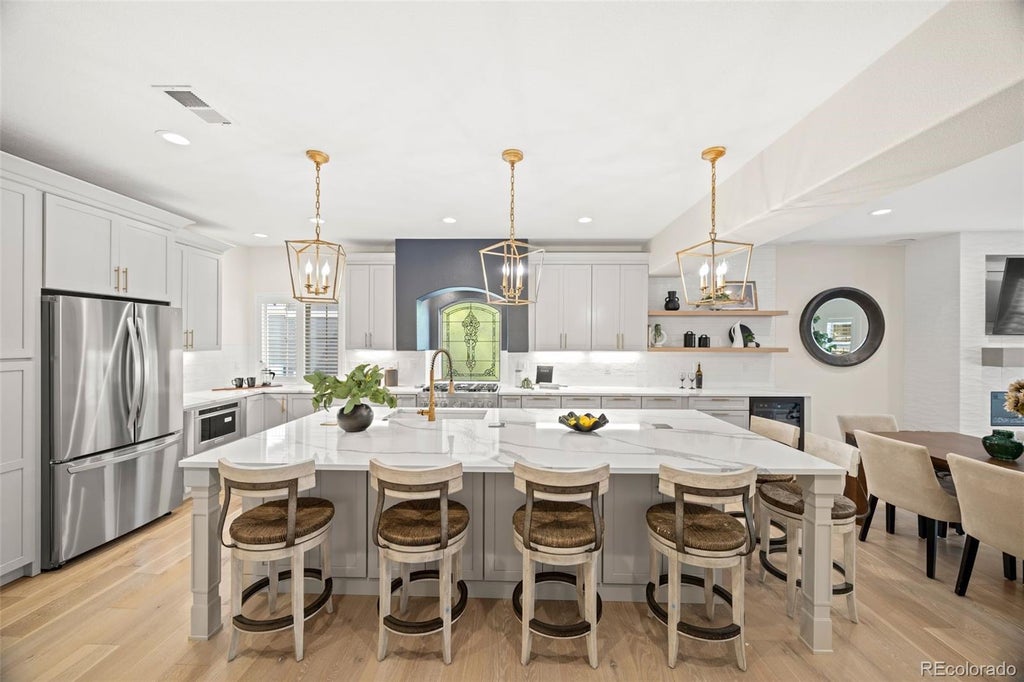 Better Than a Model Home – Absolute Showstopper in Castle Rock! This absolutely stunning home has been thoughtfully updated from top to bottom with high-end finishes and custom touches throughout. From the moment you step inside, you’ll be swept away by the open layout, elegant design, and truly exceptional features. At the heart of the home lies a gourmet kitchen that will impress even the most discerning chef—with a massive island that comfortably seats six, brand-new stainless steel appliances, a wine fridge, soft-close cabinetry with open shelving, gorgeous pendant lighting, and recessed lighting throughout. Whether you're preparing a feast or simply enjoying a glass of wine with friends, this space is as functional as it is beautiful. The main level features an expansive open floor plan connecting the kitchen, dining area, and family room—ideal for everyday living and entertaining alike. You’ll also find a rare main-floor primary suite—a true retreat with plenty of space and privacy—as well as a second spacious bedroom and a full bathroom. Upstairs offers even more versatility with a large loft perfect for a second living area or home office, plus a second primary suite—perfect for guests, multi-generational living, or anyone seeking privacy. Downstairs, the finished basement provides two more generously sized bedrooms, a beautifully updated full bath, and a large recreation/media space. Brand-new carpet upstairs and in the basement complements the warm luxury vinyl plank flooring on the main level. Additional highlights include a spacious 3-car garage equipped with a convenient lift—ideal for anyone needing mobility assistance or simply making grocery runs easier. Tucked into a peaceful neighborhood, this home feels private and serene, yet is just minutes from Downtown Castle Rock, the Outlet Mall, dining, and trails. Truly better than a model—this home must be seen in person to be fully appreciated. Schedule your private showing today!