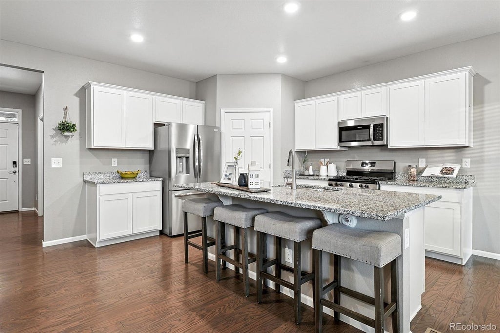 Welcome to this beautifully cared for Copperleaf home built in 2019 and truly move-in ready. From the inviting curb appeal to the PAID-OFF solar panels that help keep utility costs low, every detail of this home reflects comfort, efficiency, and style. Inside, gorgeous wood flooring and an open, flowing layout create a warm and welcoming atmosphere. The inviting living area connects effortlessly to the dining space and the stunning kitchen, which features granite countertops, a large center island, stainless steel appliances, and a spacious walk-in pantry perfect for both everyday living and entertaining. A main level bedroom and a full bath offer excellent flexibility for guests or multigenerational living, while a dedicated office makes working from home a breeze. Upstairs, discover a generous loft area, a convenient laundry room with the washer and dryer included, and three additional bedrooms. The primary suite serves as a peaceful retreat complete with a large walk-in closet, private bath, and a cozy sitting area ideal for relaxing. Enjoy Colorado living at its best in the expansive backyard with a beautiful stamped concrete patio ideal for summer barbecues or quiet evenings outdoors. Located close to E470 and Southlands Mall, this home also provides access to Copperleaf's fantastic community amenities, including parks, trails, playgrounds, and The Arboretum, which features pools, a clubhouse, and a basketball and hockey combo court. Outdoor lovers will also appreciate the nearby Aurora Reservoir for even more recreation and adventure. With its thoughtful design, exceptional upkeep, and modern features, this home offers the perfect combination of style, comfort, and community living, ready for you to move in and make it your own. Plus, the air ducts and gutters have all been professionally cleaned. Buyers who qualify and finance their home through our preferred lender will enjoy a 1% RATE REDUCTION during the first year of ownership.