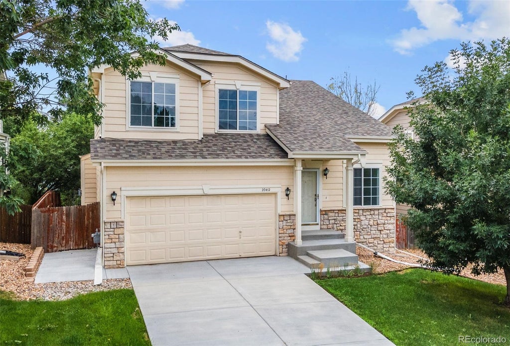 Welcome to this fully remodeled two-story home located on a quiet cul-de-sac in the Cherry Creek School District. Featuring 5 bedrooms and 3 updated bathrooms, this home offers an open layout with vaulted ceilings, a bright living room, and a cozy family room with fireplace. The kitchen is updated with new countertops, stainless steel appliances, and modern lighting—perfect for everyday living and entertaining. The finished basement adds extra living space, a bedroom, and a full bath. Enjoy the large deck and private backyard surrounded by mature trees. Recent upgrades include a new roof (2024), new furnace and A/C, newer water heater, new driveway, floors, paint, and light fixtures. This move-in ready home blends comfort, style, and location.