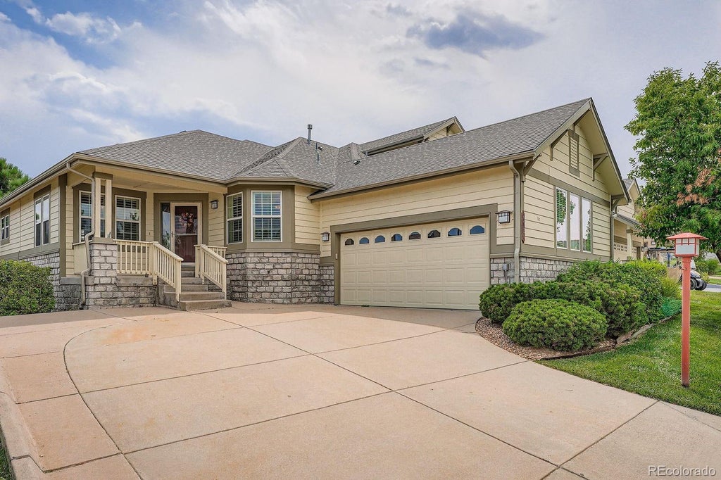 Welcome home to this exquisite attached single family home backing to the beautiful 13th fairway! This is the second largest of the 4 duplexes in the Traditions Collection #803. With gorgeous (real) hardwoods, plantation shutters and surround sound throughout, the breezy main level features a large family room with a double sided gas fireplace, dining room, breakfast nook, kitchen with 42" cherry cabinetry and commercial grade stainless steel Maytag appliances, a light and bright office (or a 3rd bedroom) with built in desks and cabinets, laundry room (Maytag washer and dryer included) and a fully remodeled full bath. The main floor primary en suite showcases a fully remodeled bath and a huge walk in closet. The fully finished lower level features a large guest bedroom, another fully remodeled bath with steam, a full wet bar with wine fridge, ice maker and dishwasher. There is also a family room with a second gas log fireplace. There is a ton of storage and counter space in the oversized 2 car garage complete with flourescent lighting, a Lennox heater and utility sink. Both of the South facing upper and lower patios have gas lines for convenient grilling and the Furnace and Water heater are newer. Heritage Eagle Bend is the premier 45+ lifestyle gated community offering 24 hour security, snow removal and landscaping included in the HOA. With a public 18 hole championship golf course, the excellent Eagles Nest restaurant, inspiring front range views, indoor and outdoor pools, pickleball courts, a 37,000 square foot clubhouse filled with everything from a library to a state of the art fitness center to a ballroom, come see for yourself why the Heritage Eagle Bend residents just love living here!